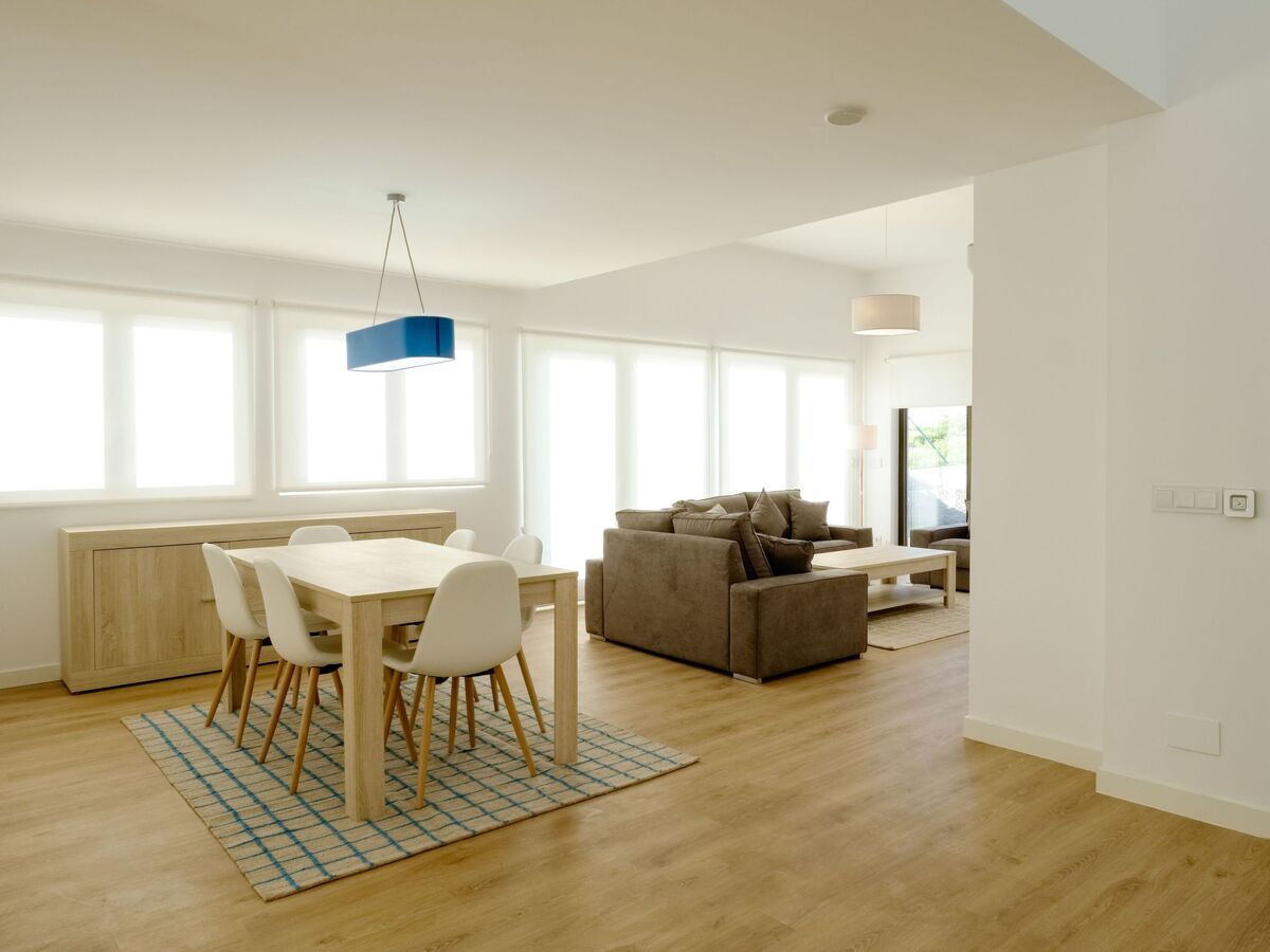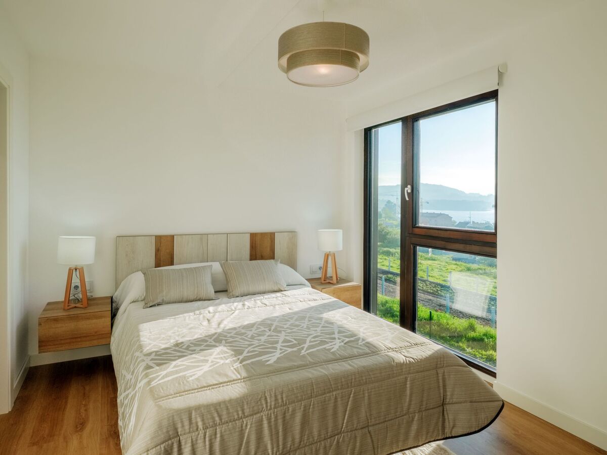Maison neuve (2016), villa de vacances entièrement indépendante nichée dans la campagne vallonnée, avec vue spectaculaire sur la mer depuis la terrasse ensoleillée sur le toit avec piscine privée Cette maison de 165 mètres carrés est dans une position élevée, offrant une vue spectaculaire sur la mer à travers Ria de Muros toute la journée.