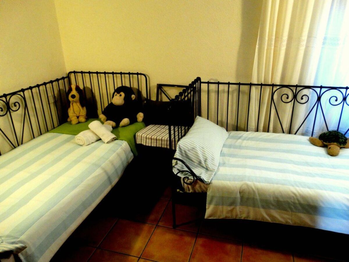 The house has a double suite with full bathroom, another room with two single beds, a third double room on the ground floor and three more rooms on the first floor, a suite with a double bed and an extra single bed and a full bathroom inside, another double room and a last one with two single beds, adding two more shared bathrooms, one on each floor.