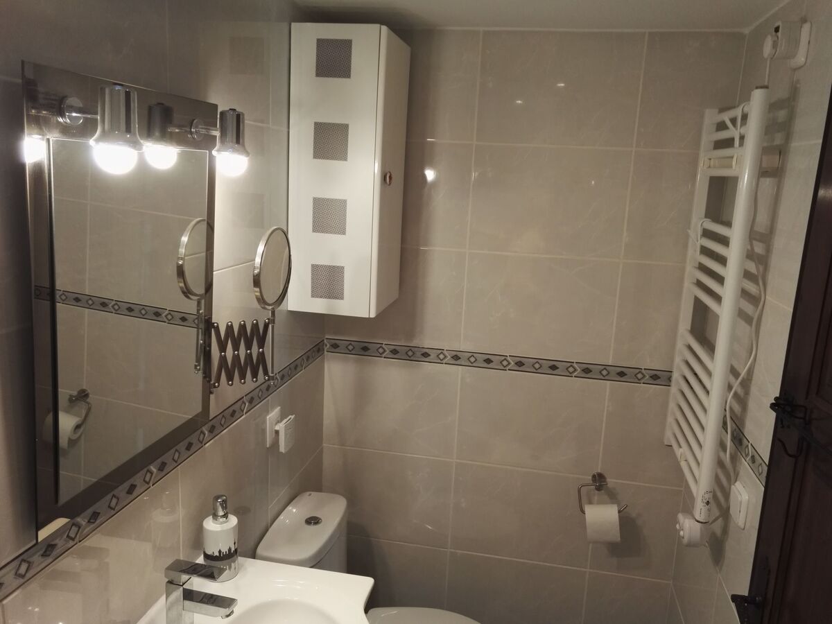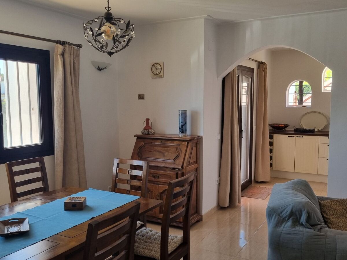 The house consists of a large living/dining room with direct access to the kitchen and exit to the main terrace, three north-facing double bedrooms with fitted wardrobes, a bathroom with WC and bathtub, a bathroom with WC and shower and a garage, which is used as a storage room.