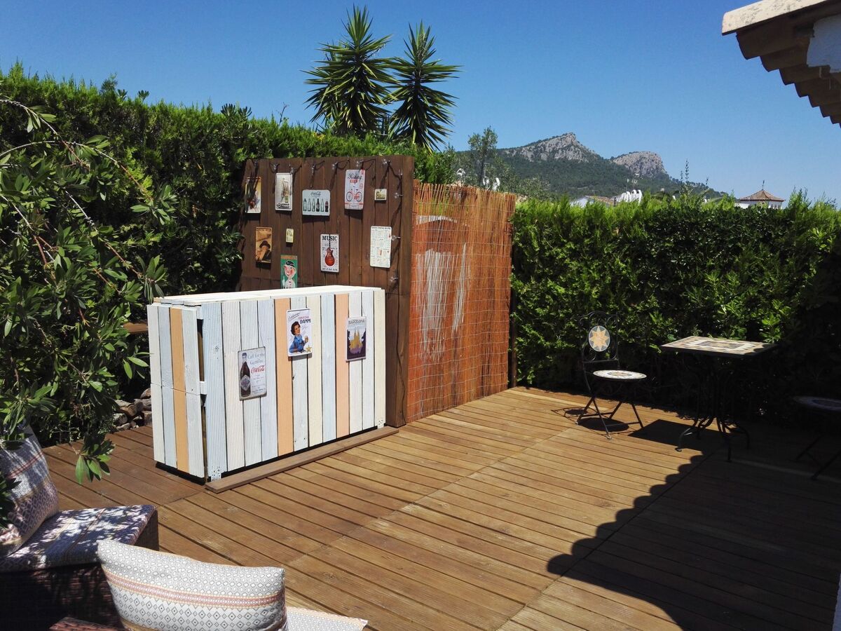 A further, also sheltered terrace with four sun loungers is located behind the house, as is our beautiful wooden terrace with bar and electric barbecue.