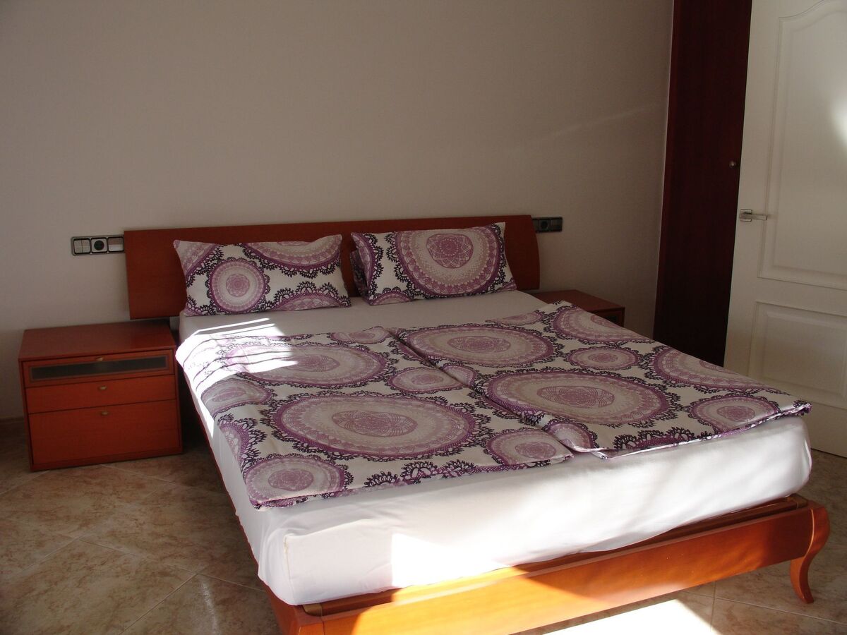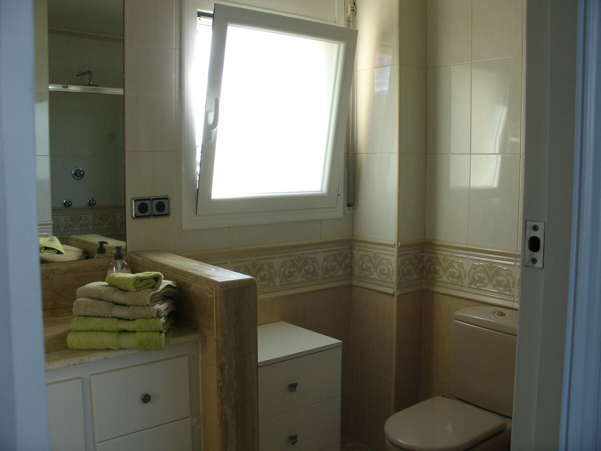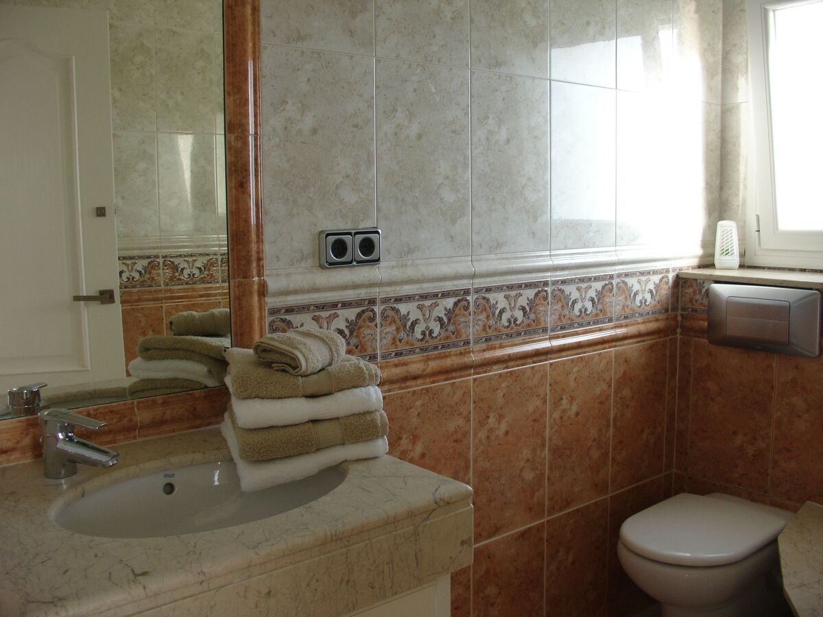 In the first bedroom there is a double bed (1.80 m x 2.00 m, new), in the second bedroom a single bed (0.90 x 1.90 m) (extra bed possible on request) and the third bedroom has a king size bed (1.60 x 2.00 m) with adjoining bathroom, in which there is a whirlpool bath, (currently not to be used due to water shortage 4/2014) a toilet, a washbasin and a hairdryer.