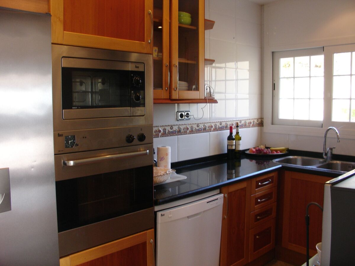 The kitchen is fully equipped with an oven, a ceramic hob, a large fridge, a small freezer and a dishwasher, a microwave, a toaster, a kettle and a coffee machine, leaving nothing to be desired.