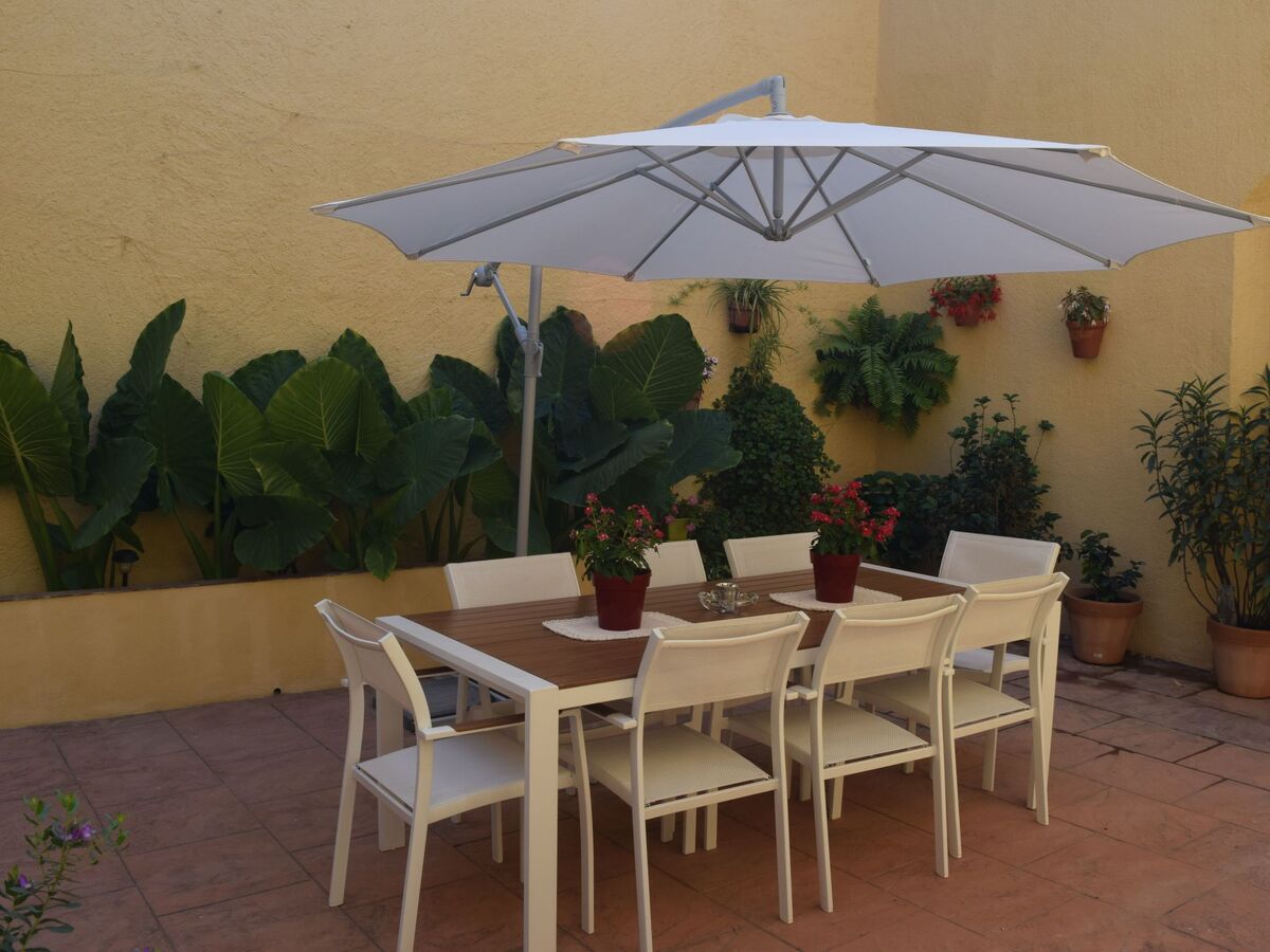 The house has an outdoor patio equipped with a large table, comfortable chairs, parasol, barbecue, and everything you need to make a good paella at lunch or dinner under the watchful eye of the illuminated bell tower.