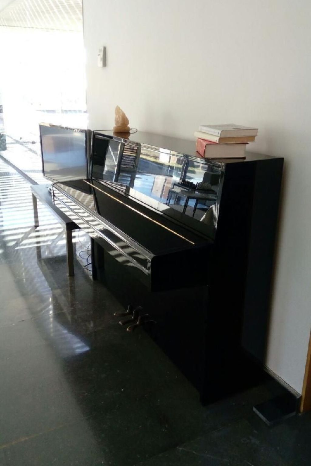 There is a piano in the living room.