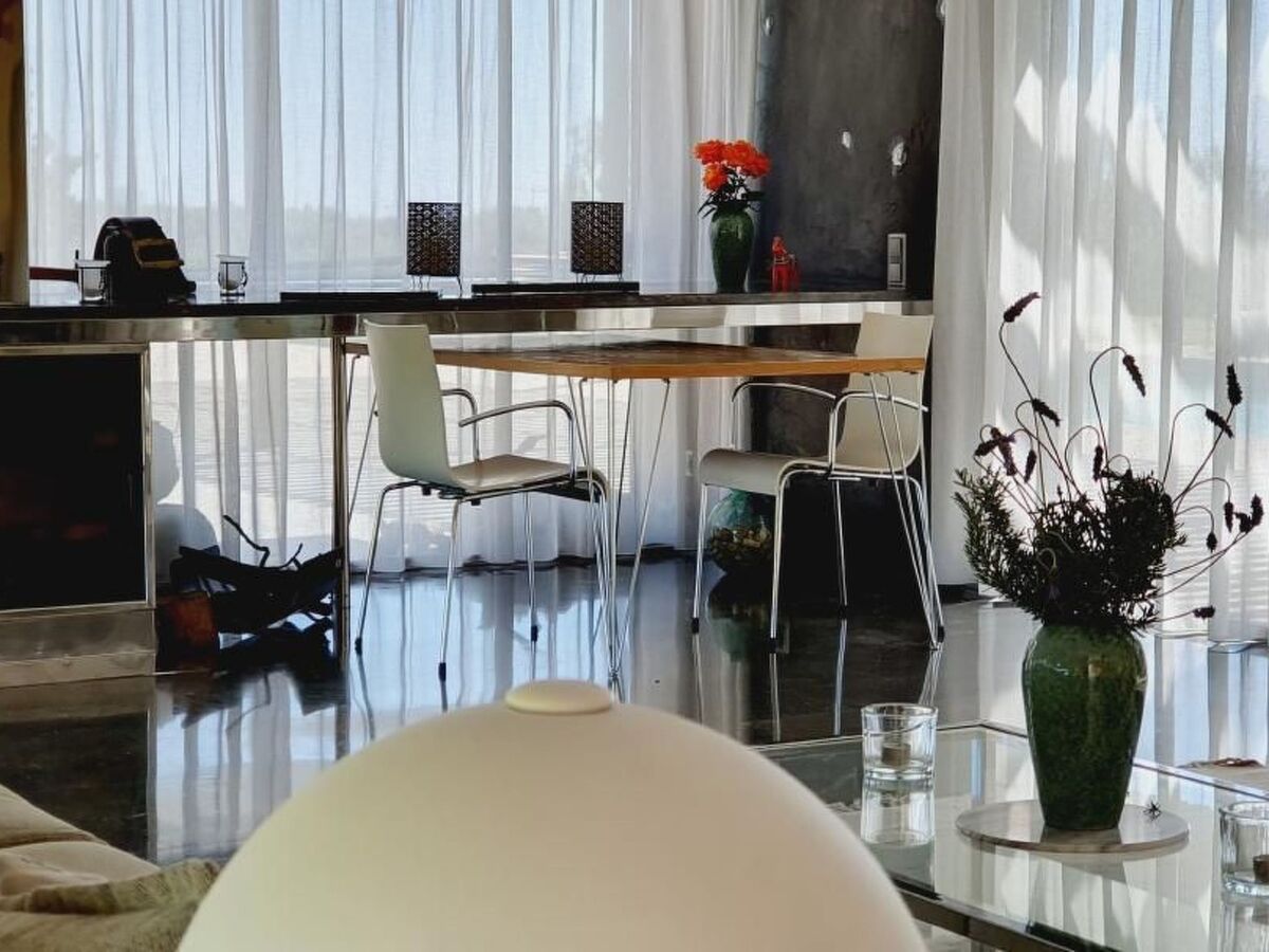 Other living room furnishings (living room 1): Spacious living room with 2 gutter couches, coffee tables, fireplace, large glass front with view of the garden and pool, large work table, access to the garden and large entrance area.