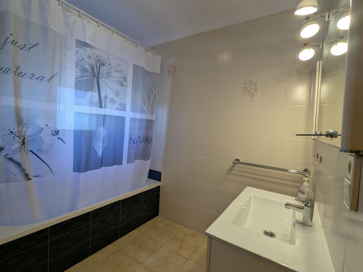 The downstairs bathroom offers a bathtub, a sink and a toilet.