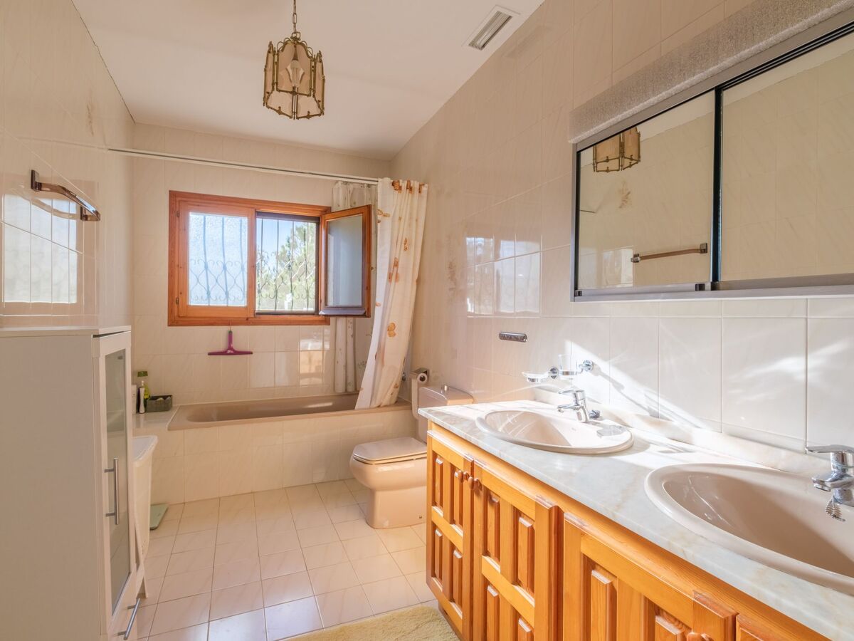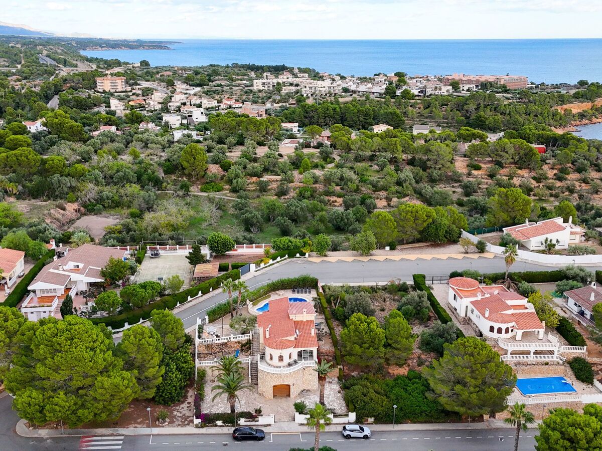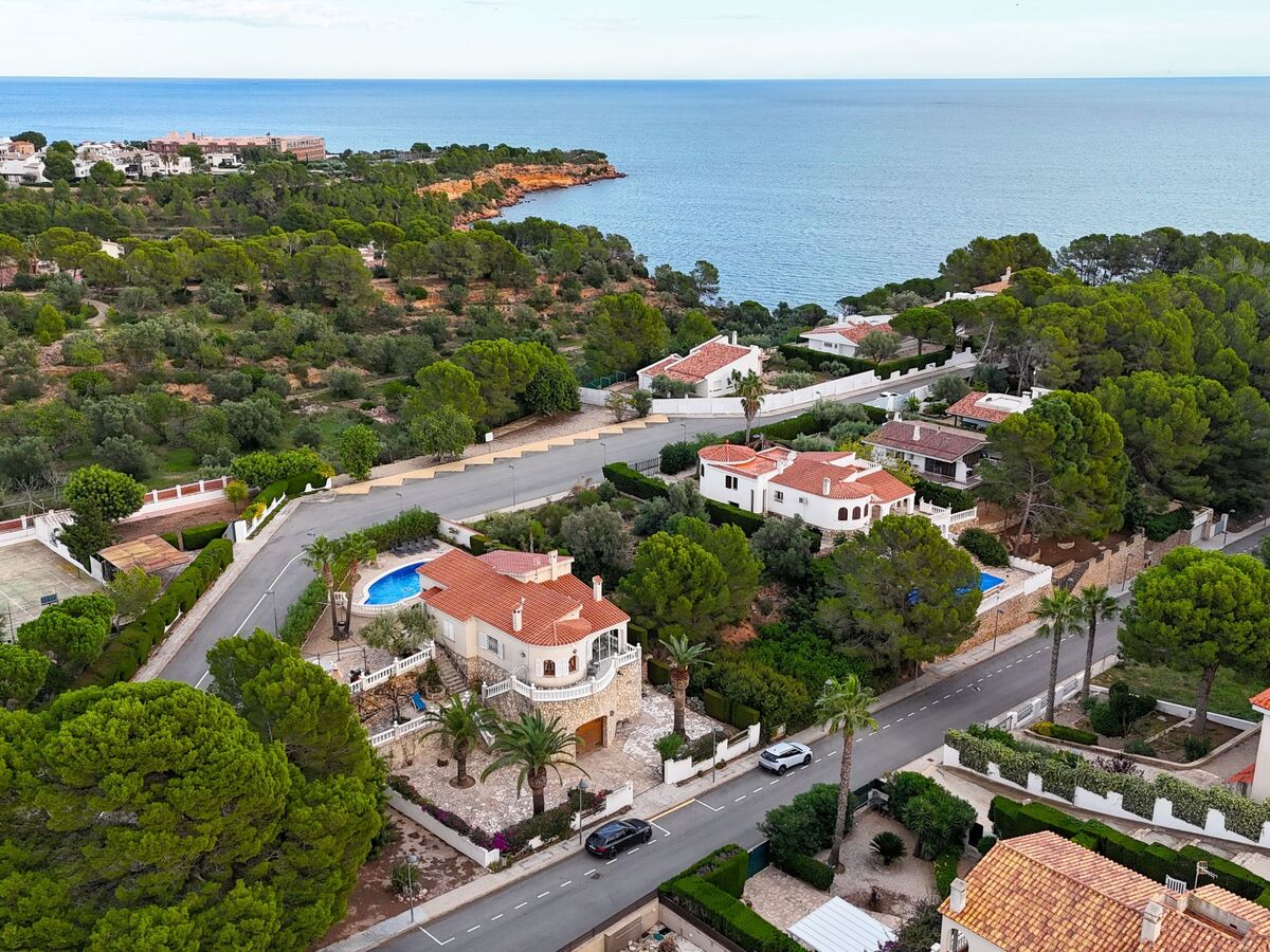 This stunning, detached villa with a large house and pool is located in a popular neighbourhood in a swimming cove away from the centre of town.