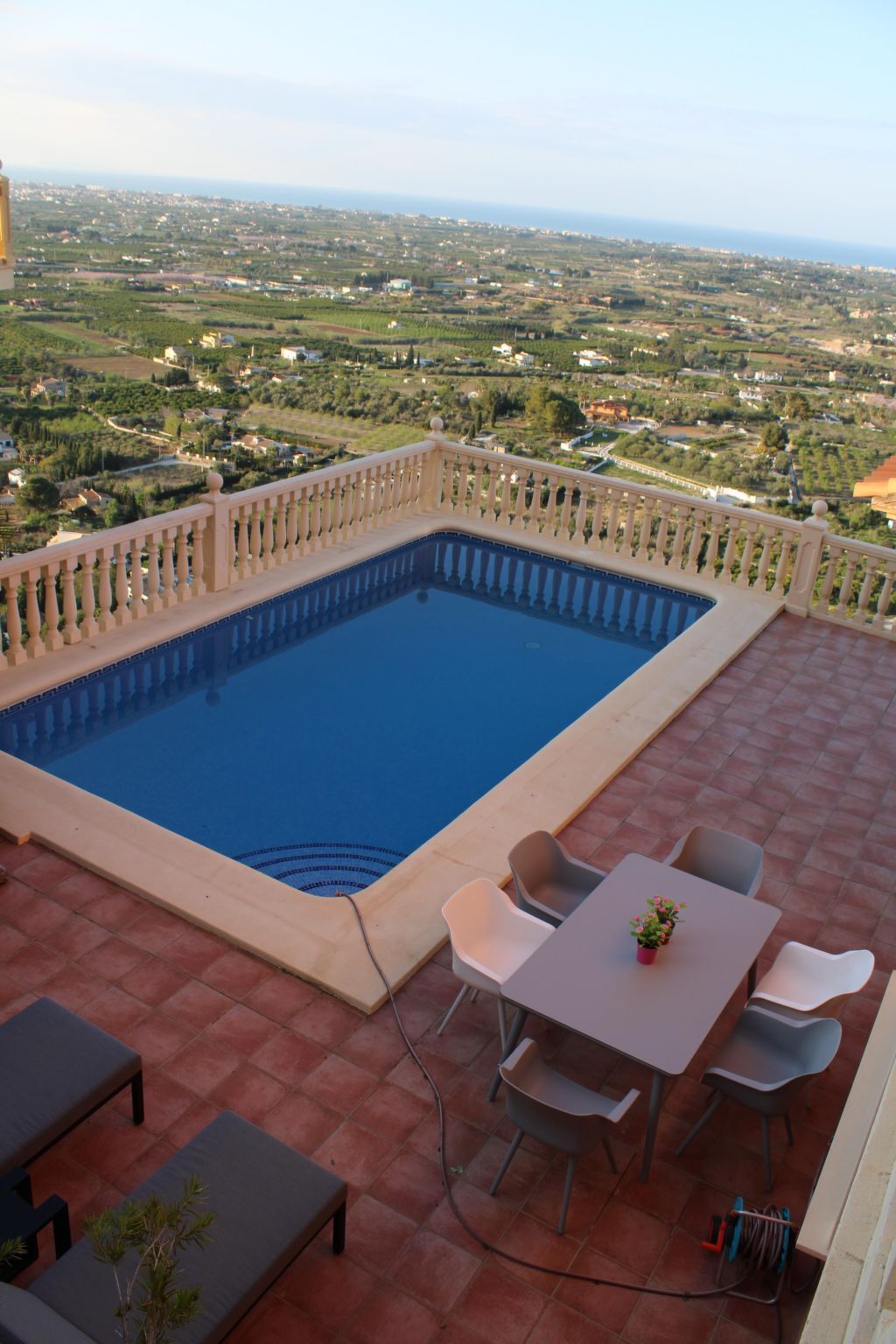 From this marvellous retreat you can enjoy a fantastic view of the Mediterranean Sea, about 10 km away, the Segària mountains, Dénia and the Montgó Natural Park as well as the green plain with its orange, lemon and almond groves.