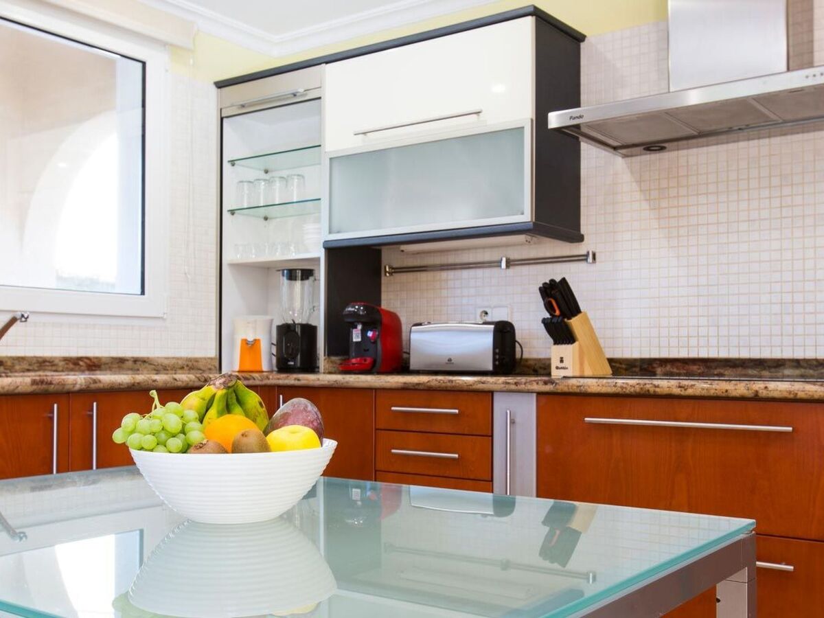 The kitchen is fully equipped with refrigerator, dishwasher, oven, microwave, coffee maker, toaster, blender, juice squeezer, kettle, crockery and cutlery.