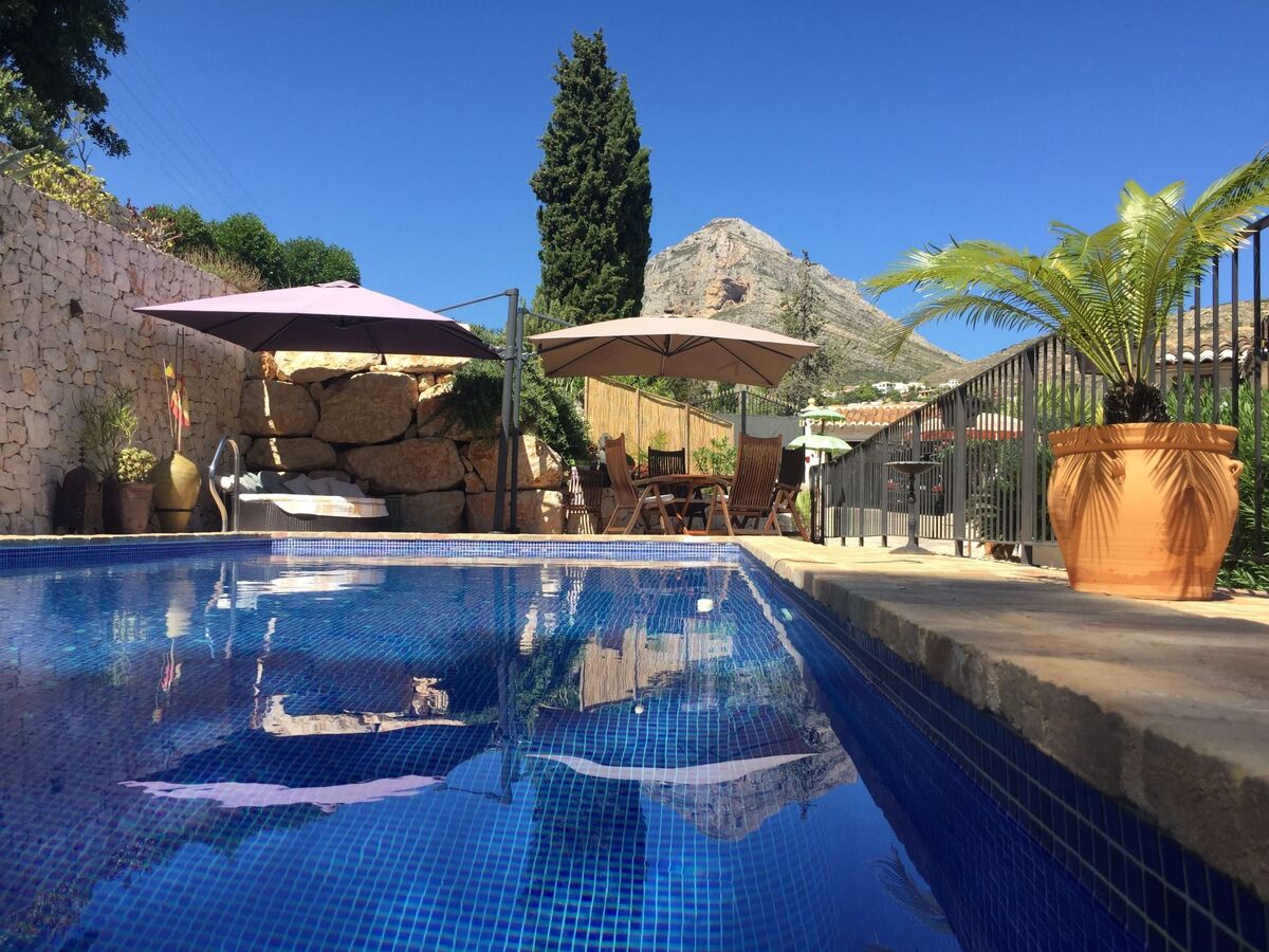 The pool is in an exclusive setting in the rocks overlooking the Montgo mountains.