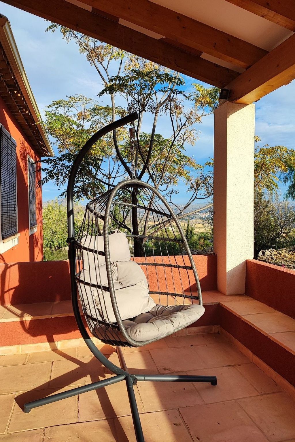 - East-facing terrace with valley view, equipped with swing egg and seating area