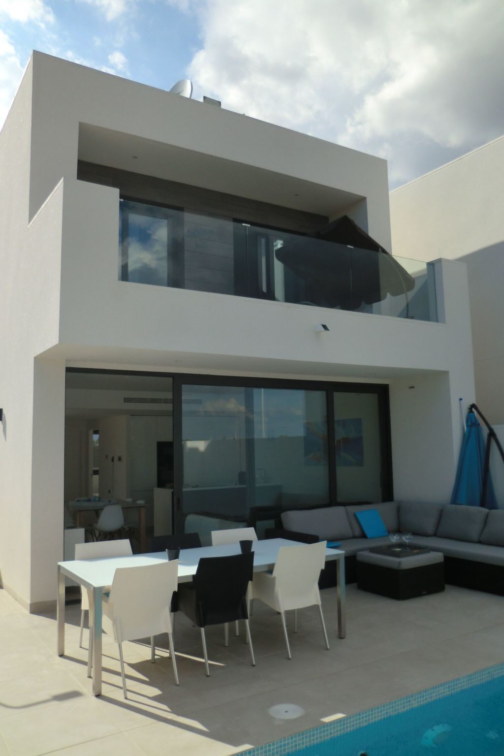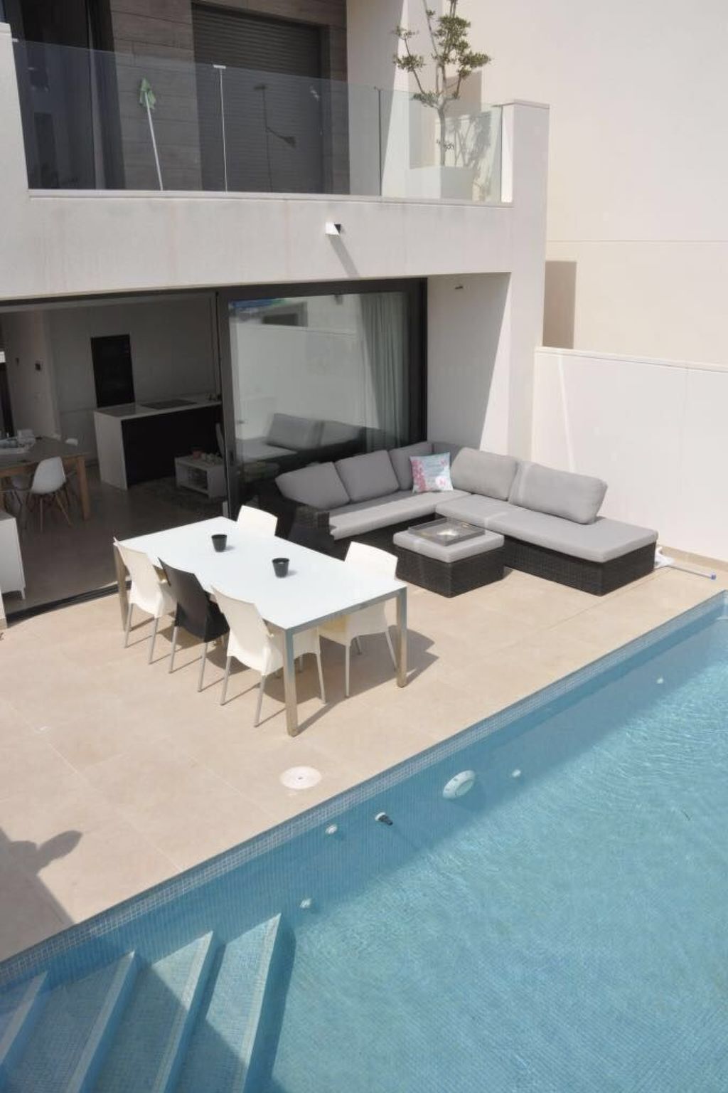 Private pool, terrace with lounge, garden furniture and sunbeds.