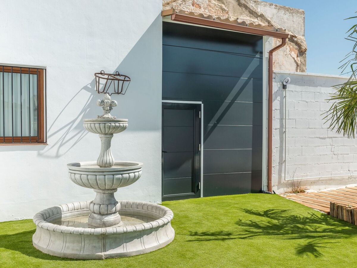 Large terrace in inner courtyard of 250 m2 with artificial grass.