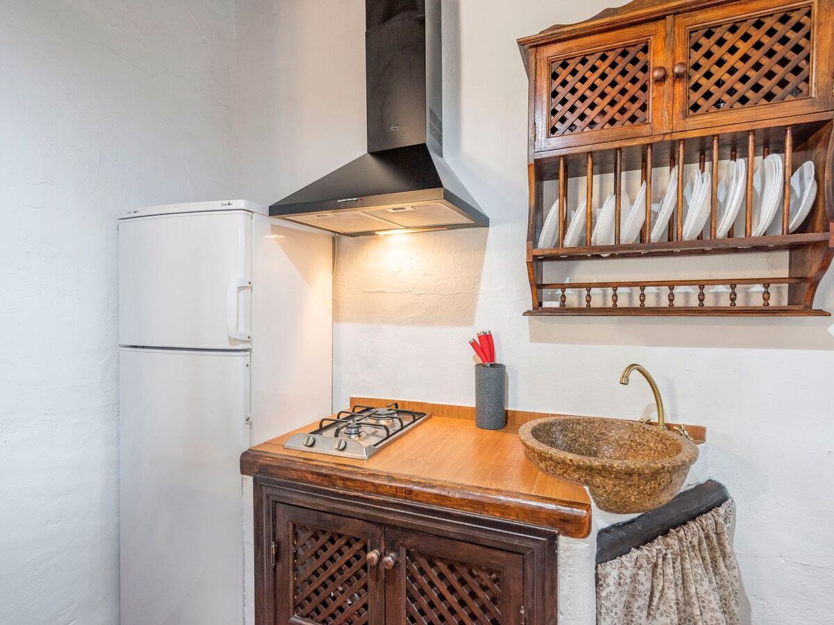 Basic kitchen open to the living room, microwave, 2 ring cooker, extractor hood, refrigerator, coffee maker,...