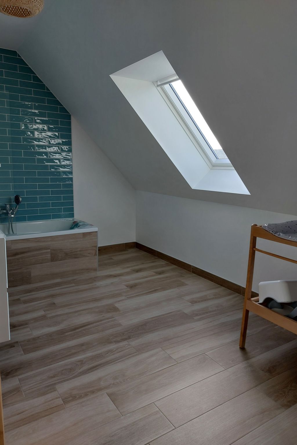 Une salle de bain avec baignoire équipée d'une table à langer et un WC complètent l'étage.
