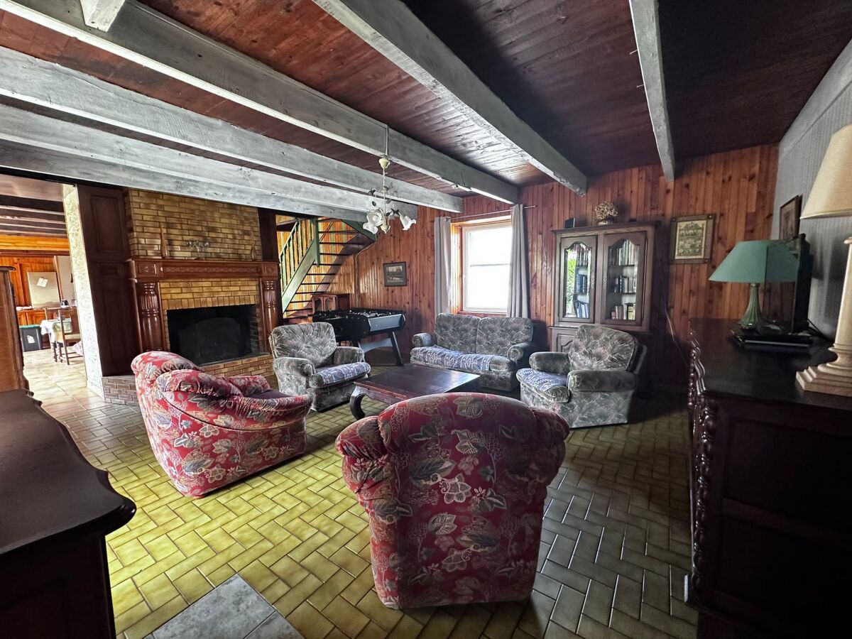 La salle de séjour est meublée d'un confortable ensemble de salon avec télévision autour de la cheminée.