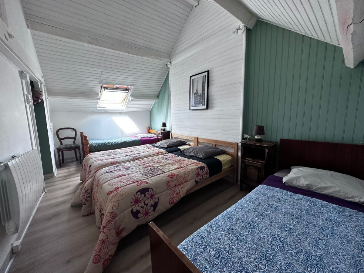 La première chambre à coucher est meublée de deux lits une place et d'un lit deux places.