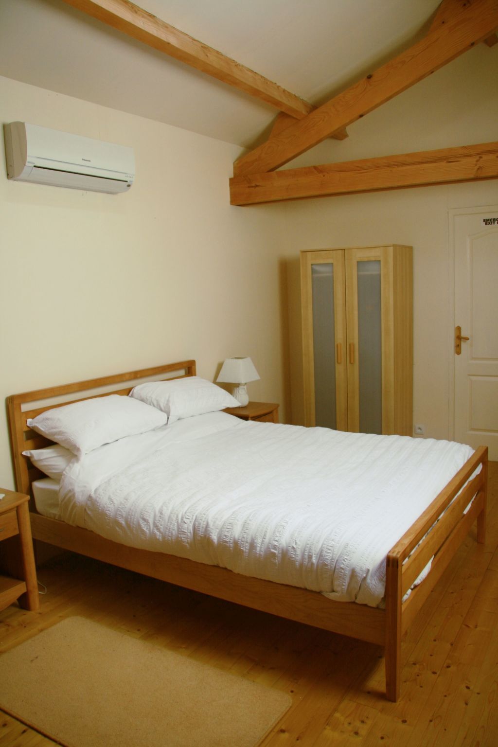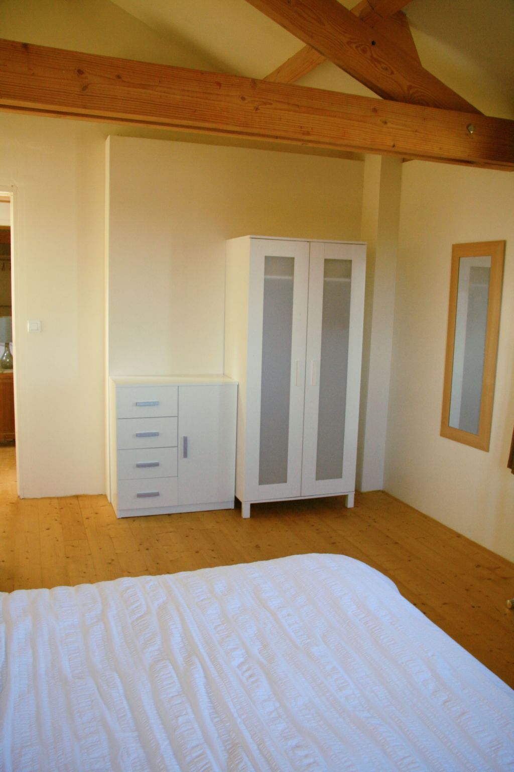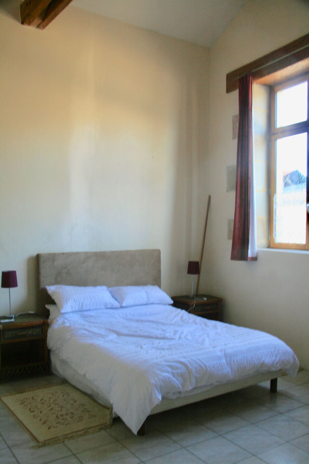 The bedrooms comprise of a large high ceiling kingsize room with a baby cot and a twin room.