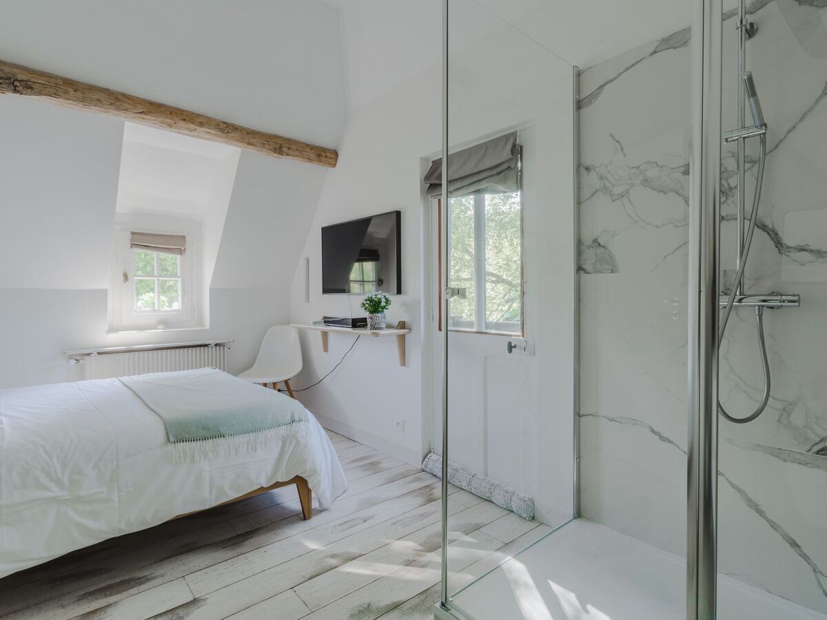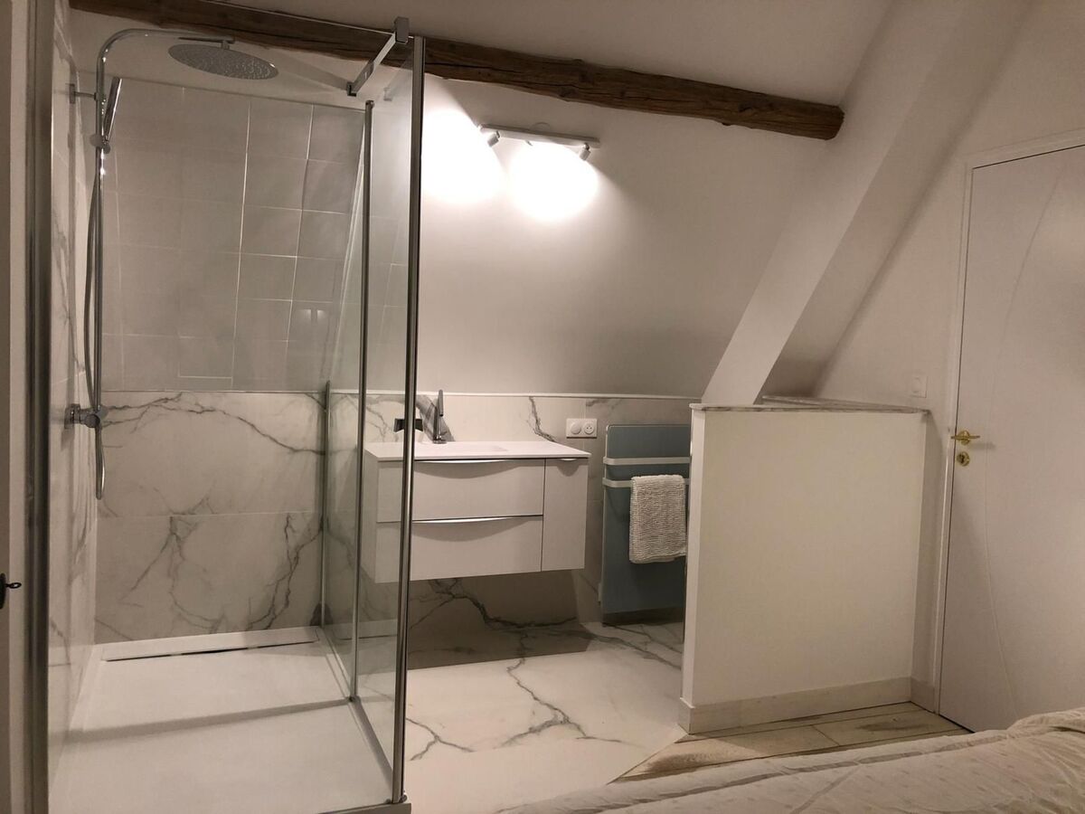Une chambre de 20m2 avec 1 lit double, salle de douche et toilettes