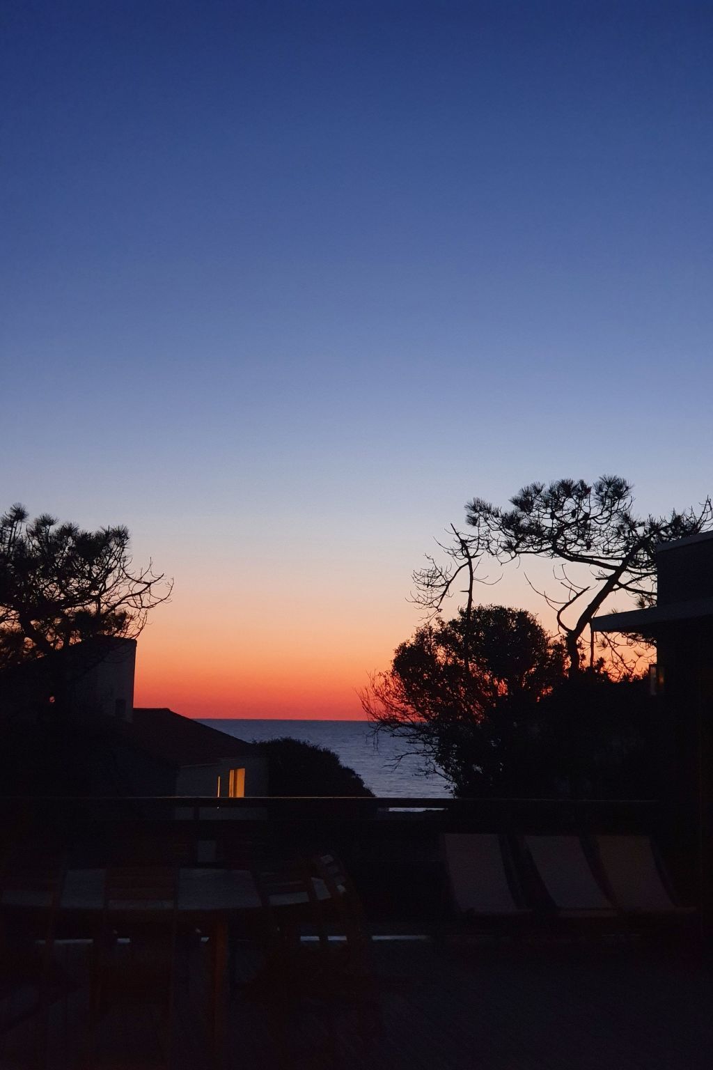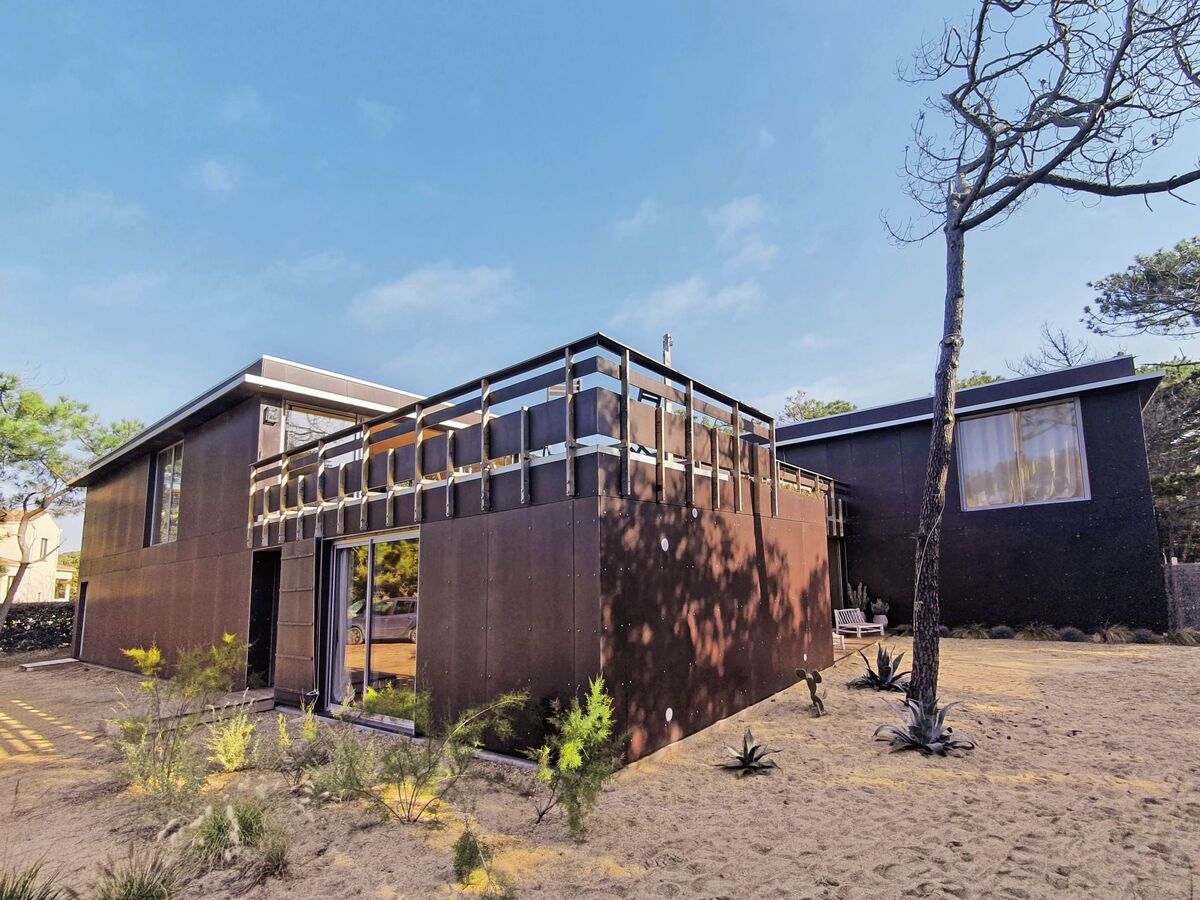 Posée sur la dune de sable surmontant les roches de la baie, elle offre des vues poétiques sur l'océan et la forêt.