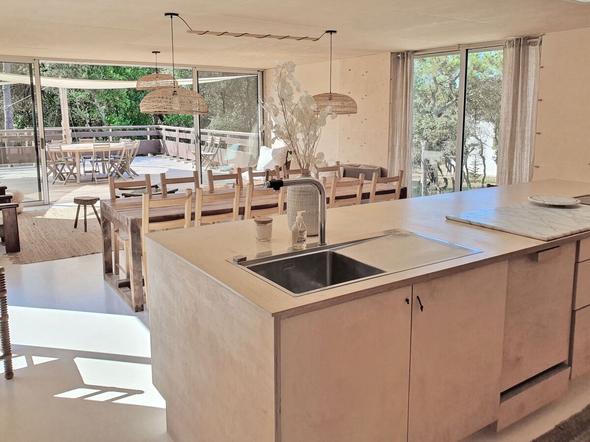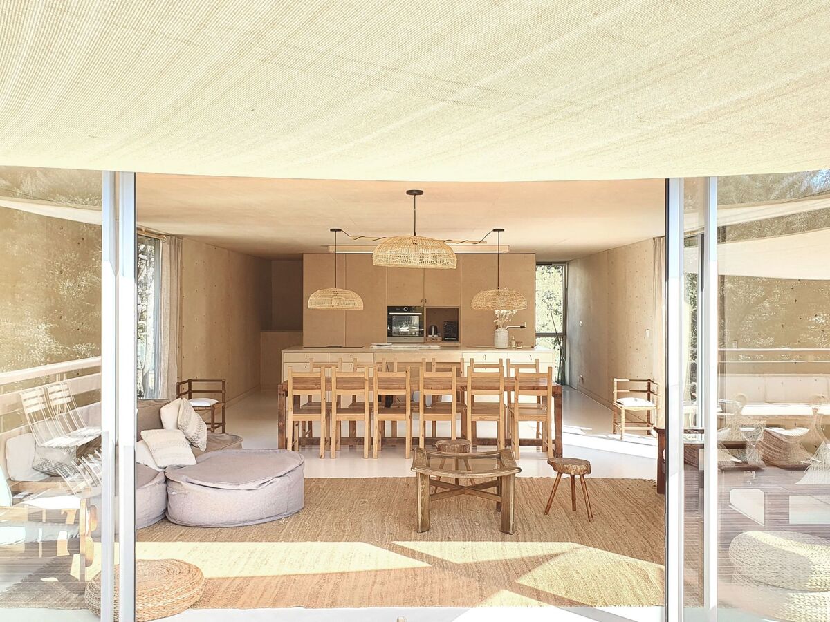 Les murs intérieurs en bois clair offrent douceur et chaleur aux lignes contemporaines de la villa.