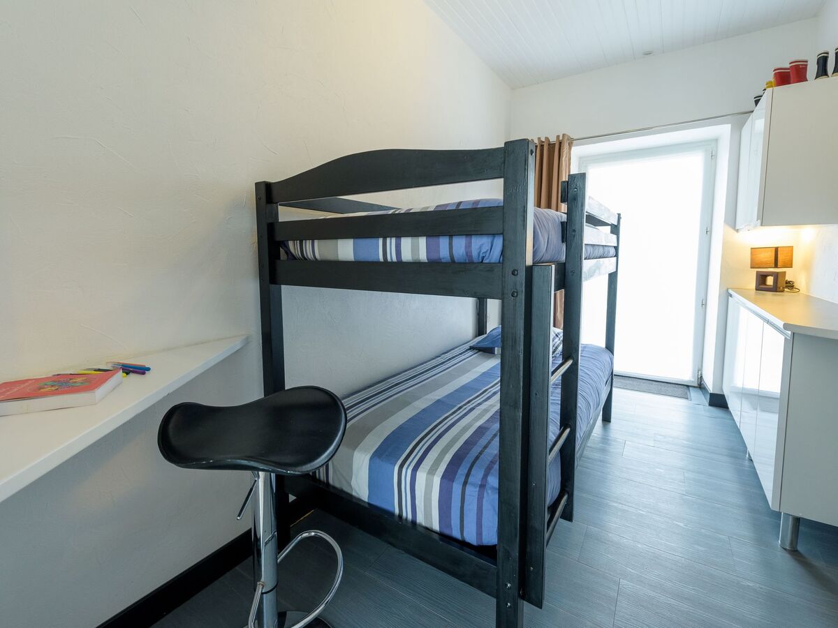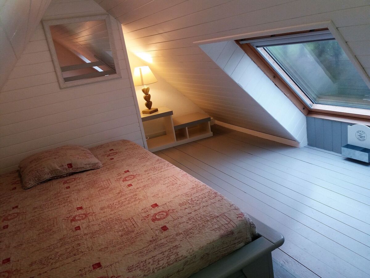 La deuxième maison, idéale pour 2 à 3 personnes, comporte une mezzanine avec un lit de 140, accessible par un escalier de type échelle de meunier.