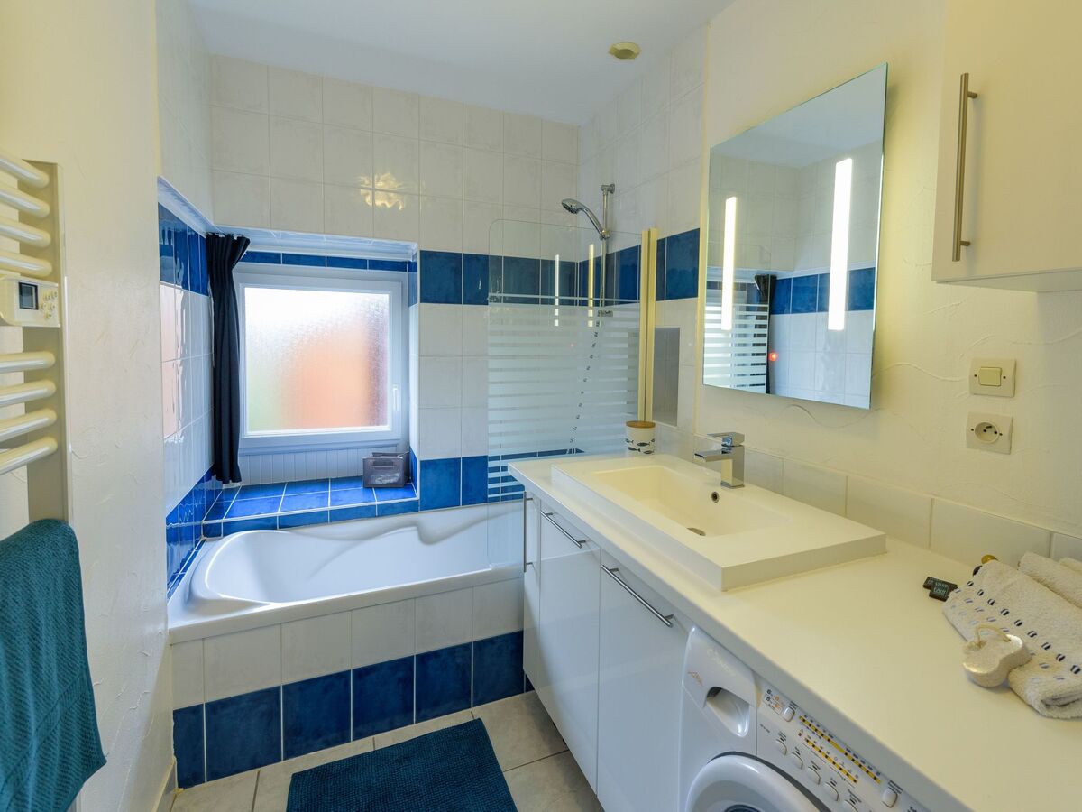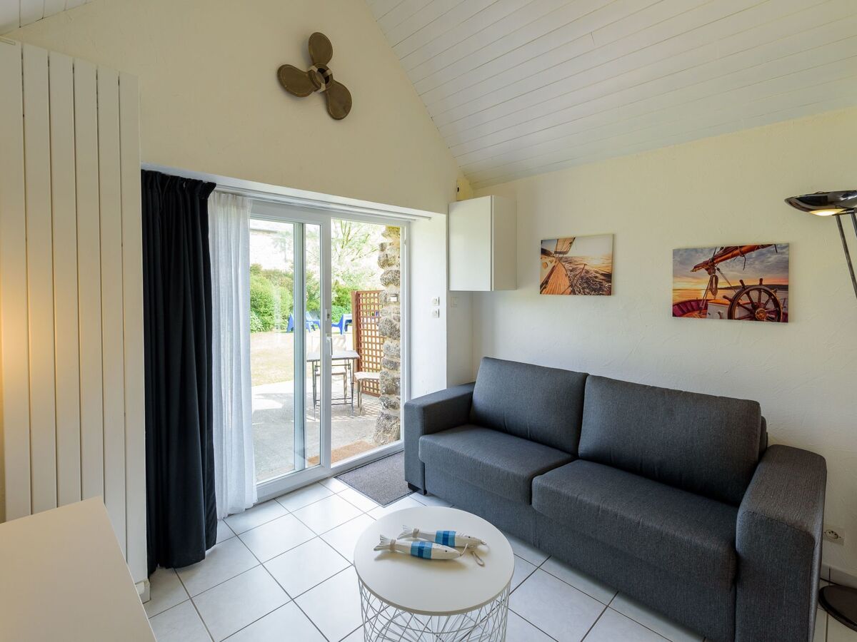 Elle dispose également d'un salon confortable avec canapé et fauteuils, de trois chambres accueillant six personnes, d'une salle de bain avec lave-linge séchan et de WC séparés.