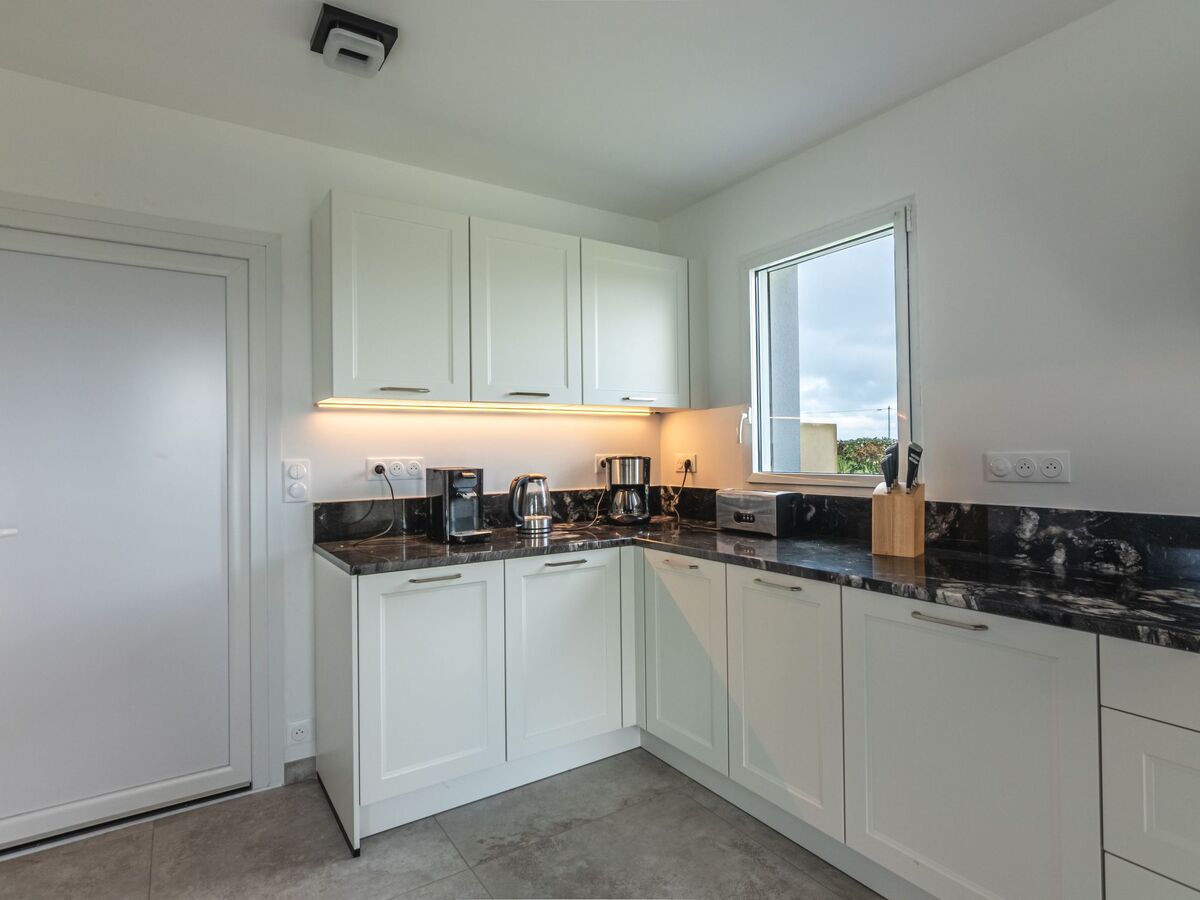 You can enjoy sunshine from the terraces in several directions (from east to south to west) almost all day long and from the terraces or the balcony you can enjoy a kilometre-wide view over the fjord landscape, a nature reserve and all the way to Lannilis.