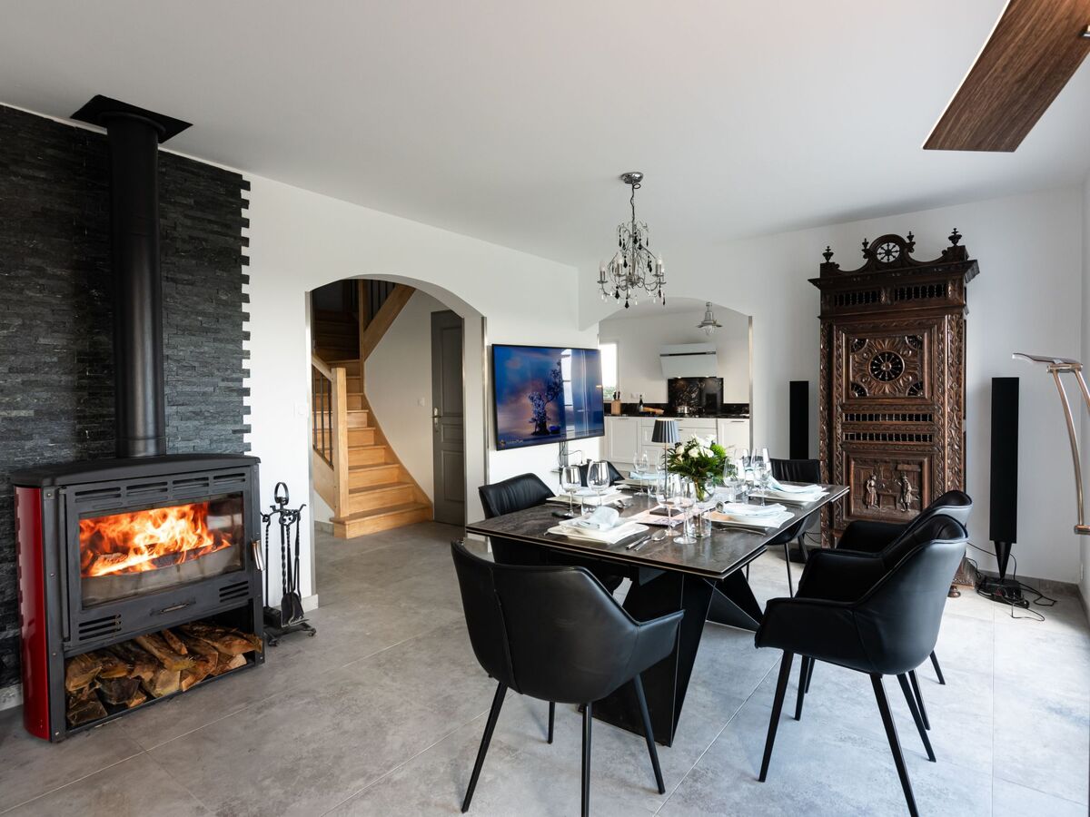 In the centre of the living area is the large fireplace, which, in addition to the electric heaters typical of France, provides additional cosiness and warmth.