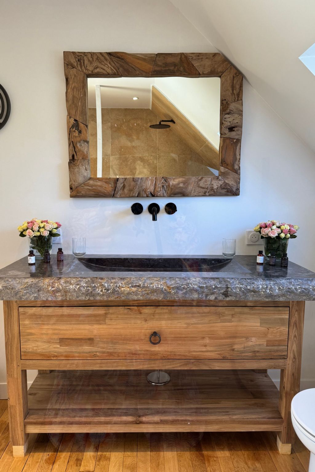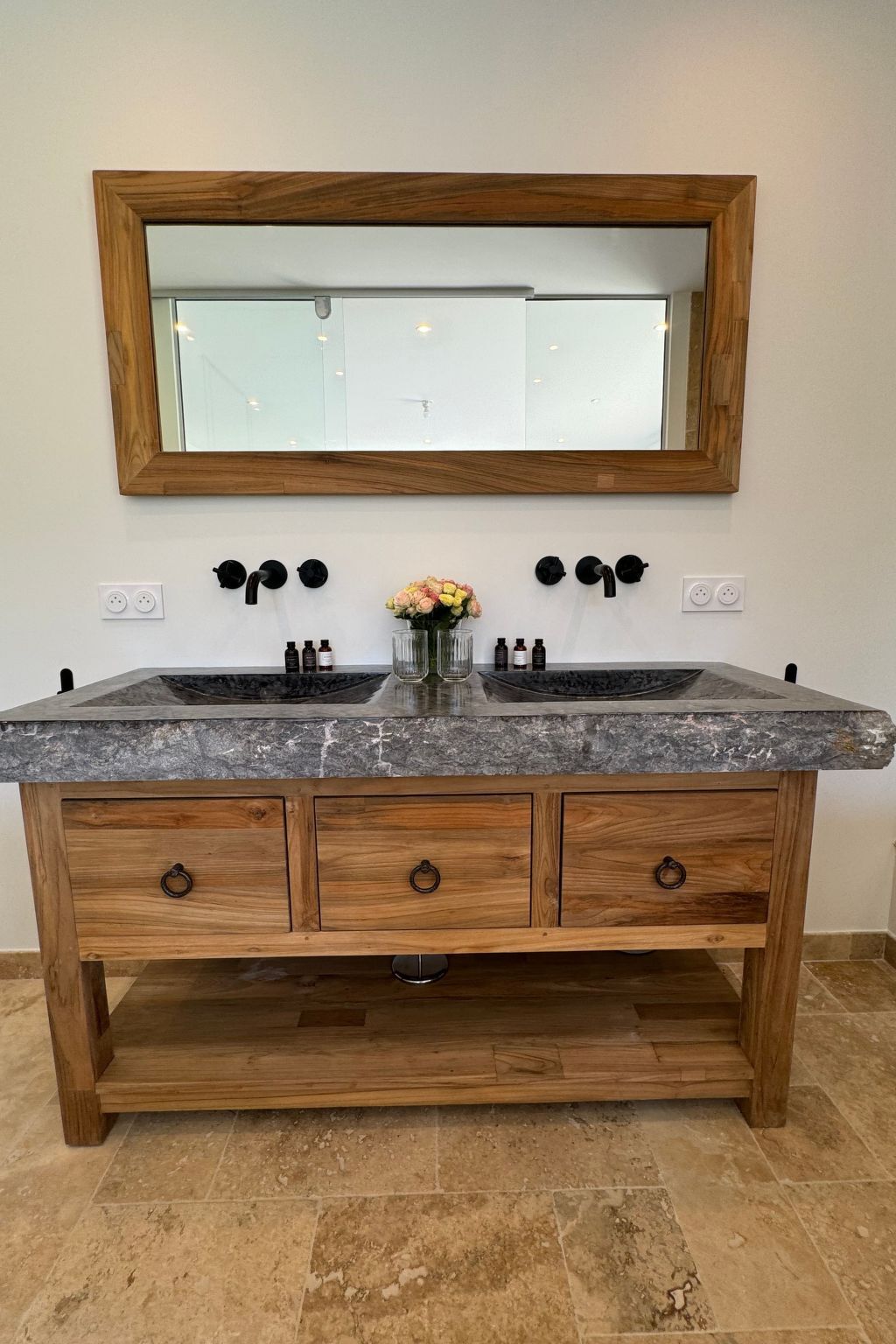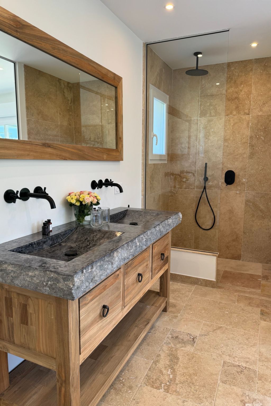 that the washbasin in the WC is cut from a block of granite and weighs over 350 kg).