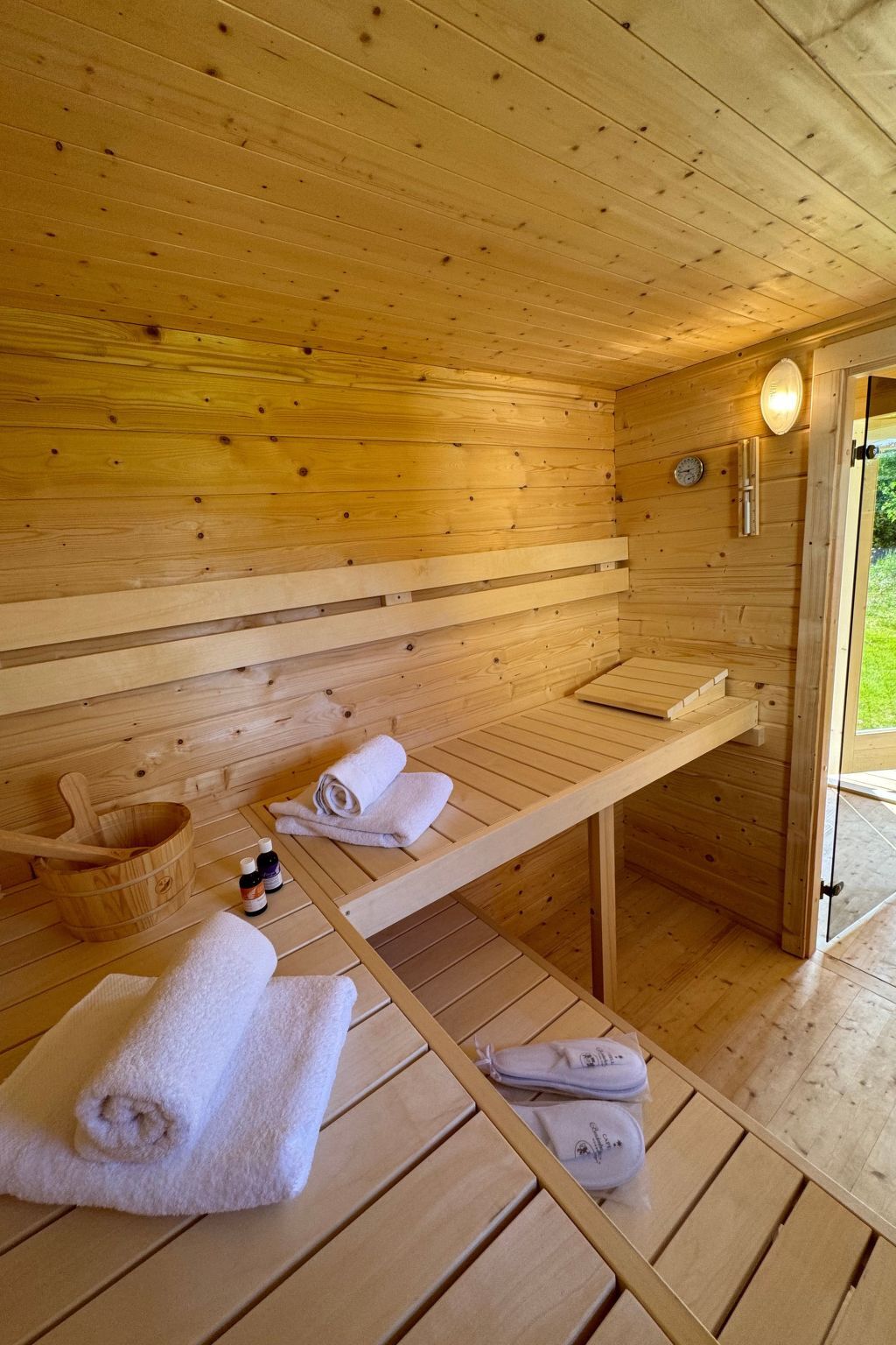Now the house shines with a new extension in which the large master bedroom is located / travertine bathroom with shower + WC and granite washbasin en suite! The highlight - the large, bright room is connected at ground level only by large sliding glass doors to the sun terrace with direct access to the jacuzzi and sauna - incidentally also a great bedroom for guests who have their four-legged friend with them - the sliding door opens directly into the large garden.
