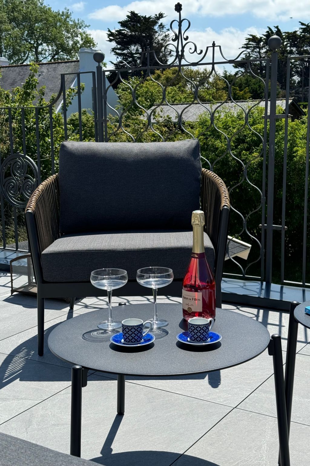 The second highlight created by the new extension is another sun terrace on a higher level with wonderful sea views.