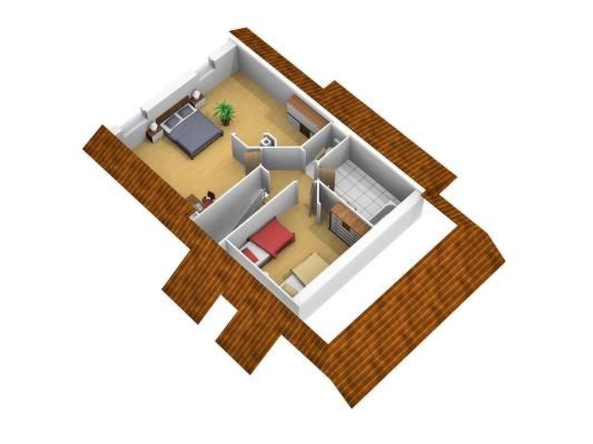 Premier étage : 2 chambres: 1 avec lit double ( 2 x 200 x 90) , 1 avec 2 lits simples (200x90).