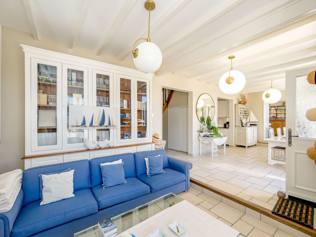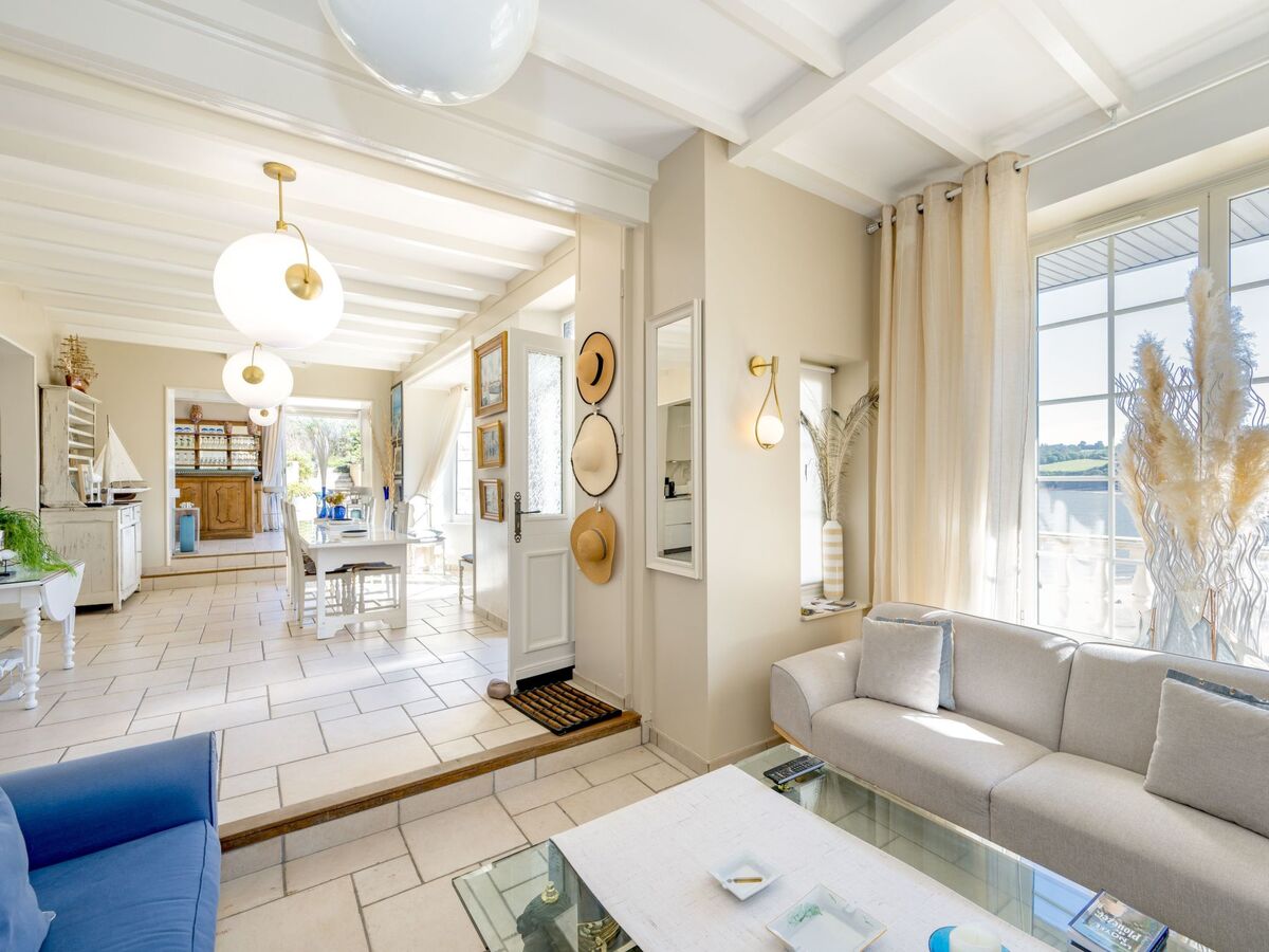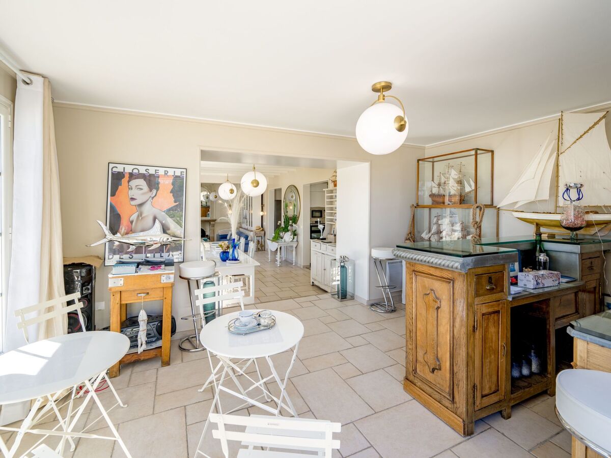 COMME SUR UN BATEAU: TOUTES LES PIECES A VIVRE DONNENT SUR LA MER/ LE PORT/LA PLAGE Le rez-de-chaussée d'une superficie d'environ 100 m² est composé des pièces suivantes : un salon avec cheminée+ Séjour avec très grande table+ Bar, un grand téléviseur à écran plat e ; à côté du séjour il y a une cuisine aménagée et toute équipée+grande arrière cuisine avec tous les équipements listés pour les grandes tablées ou invitations.