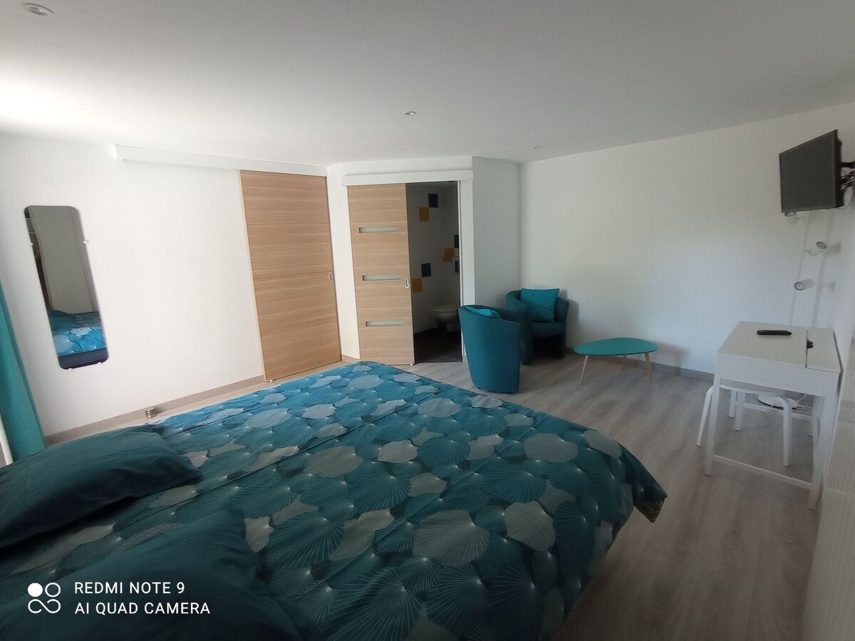 Deux chaises longues et un parasol sont disponibles pour votre confort, vous assurant des moments de détente absolue dans le jardin privé.
