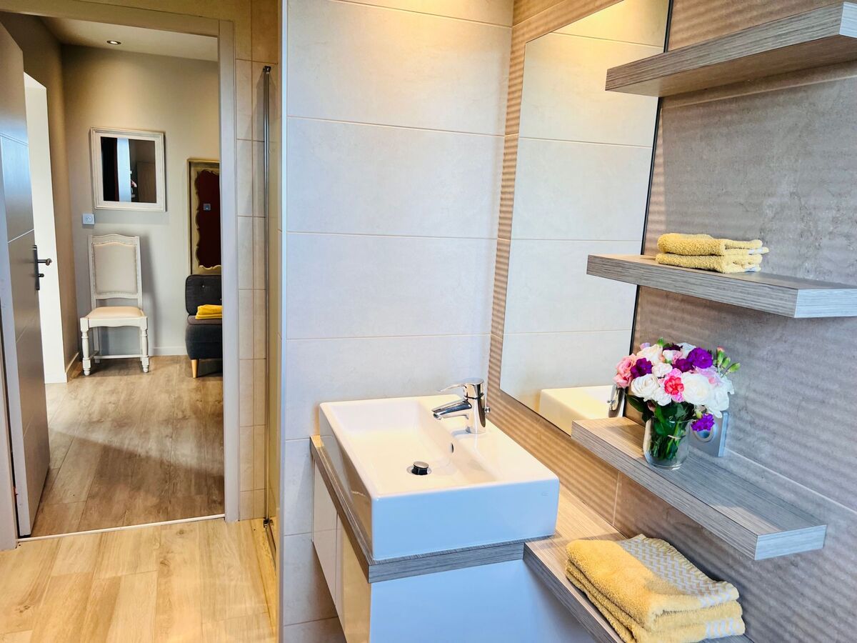 Each bedroom has a small office corner (or practical as a make-up corner) its own TV - with international satellite programmes - the wardrobe should not be missing, this master bedroom has its own bathroom with shower and private toilet.