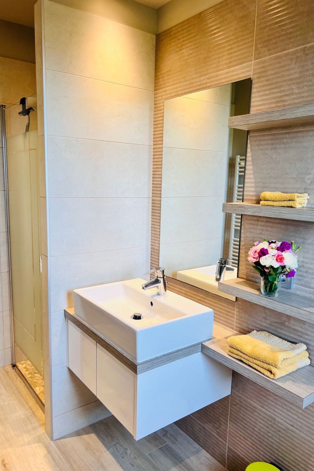 The WC is separate here and so is the bathroom - there is even a nice bathtub to relax in - the shower is integrated there - there is a glazed shower.