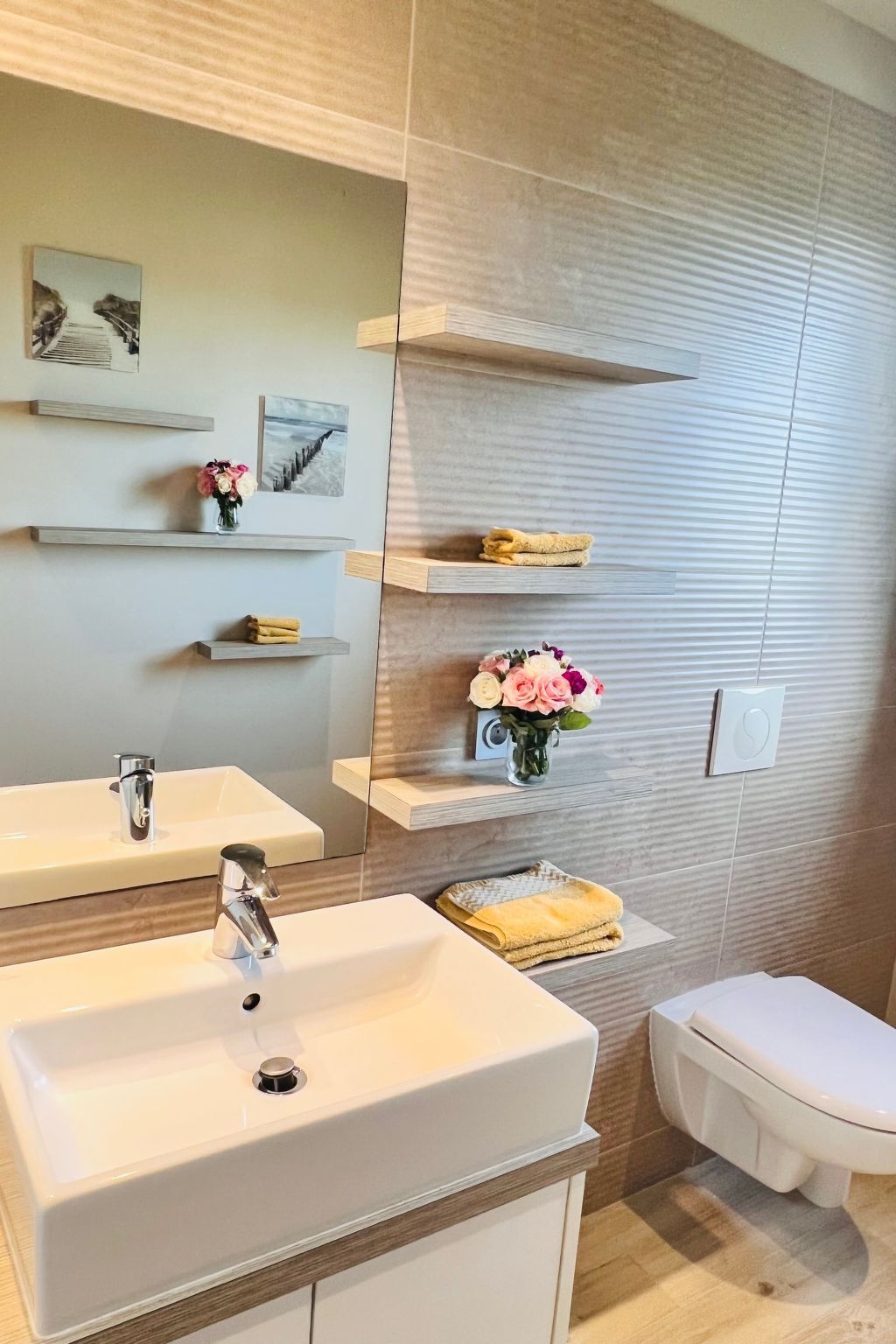 On the first floor there is also a spacious guest WC (wheelchair accessible).