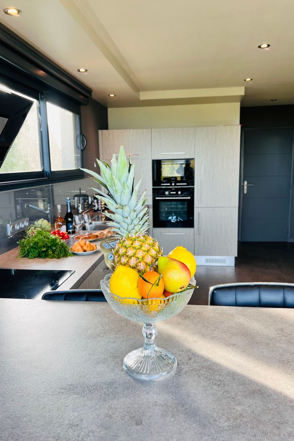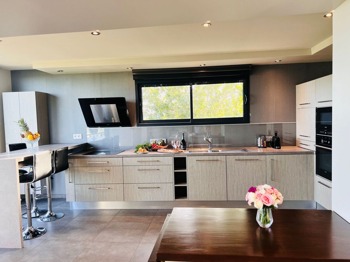 Facing the sea again, there is also a small sea view bar in the kitchen next to the dining table with its own sea view terrace access.