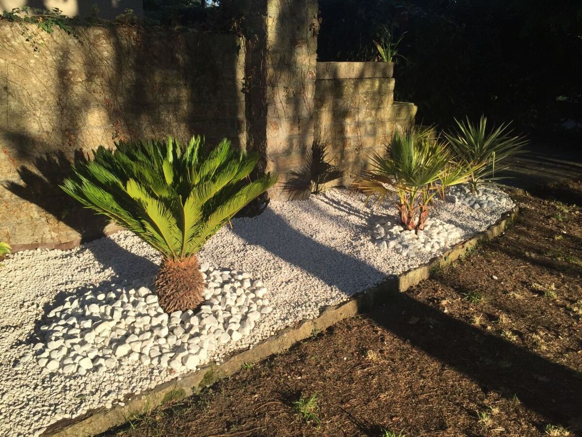 La douceur du climat permet à un ensemble de palmiers de s’épanouir au pieds de la Villa.