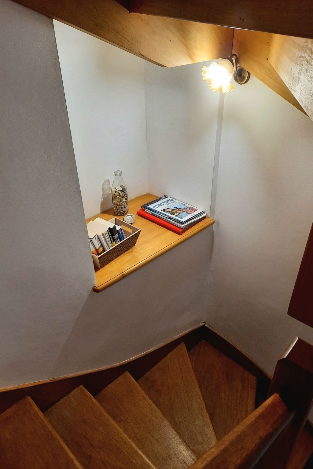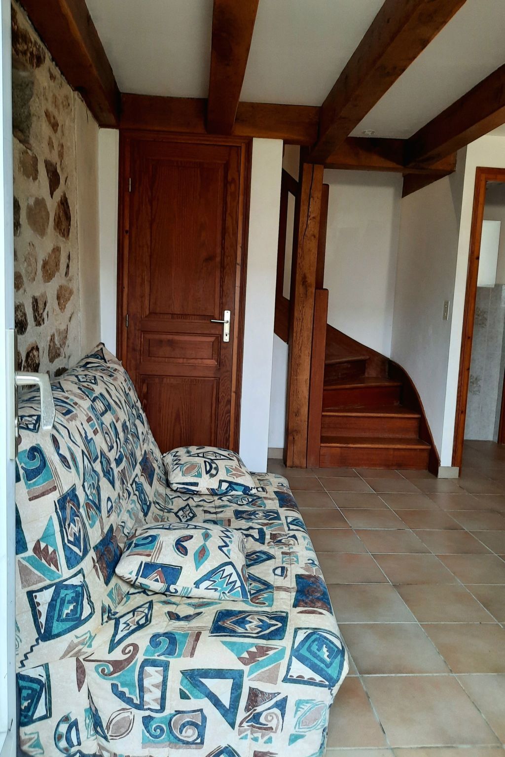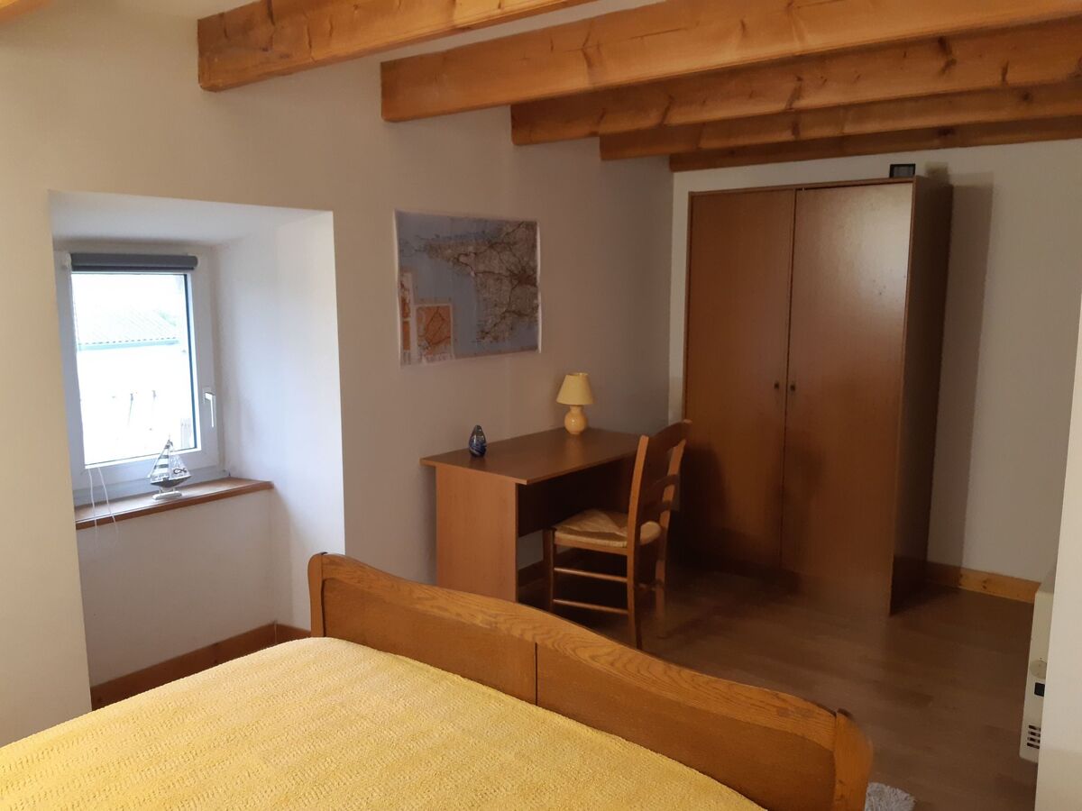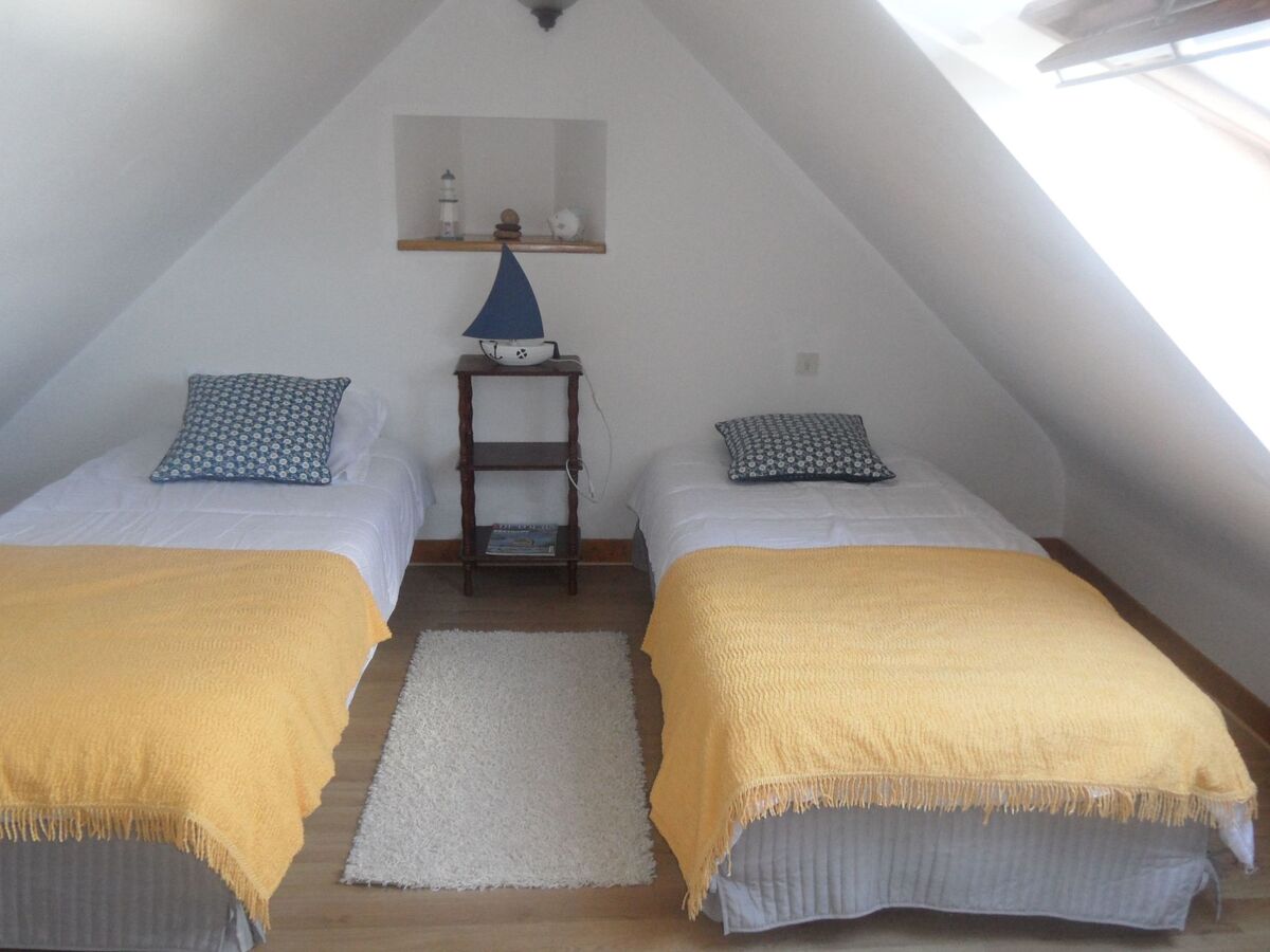 Au premier étage, 1 chambre 1 lit double, 1 salle de bain avec baignoire, au deuxième étage, une chambre avec 2 lits simples.
