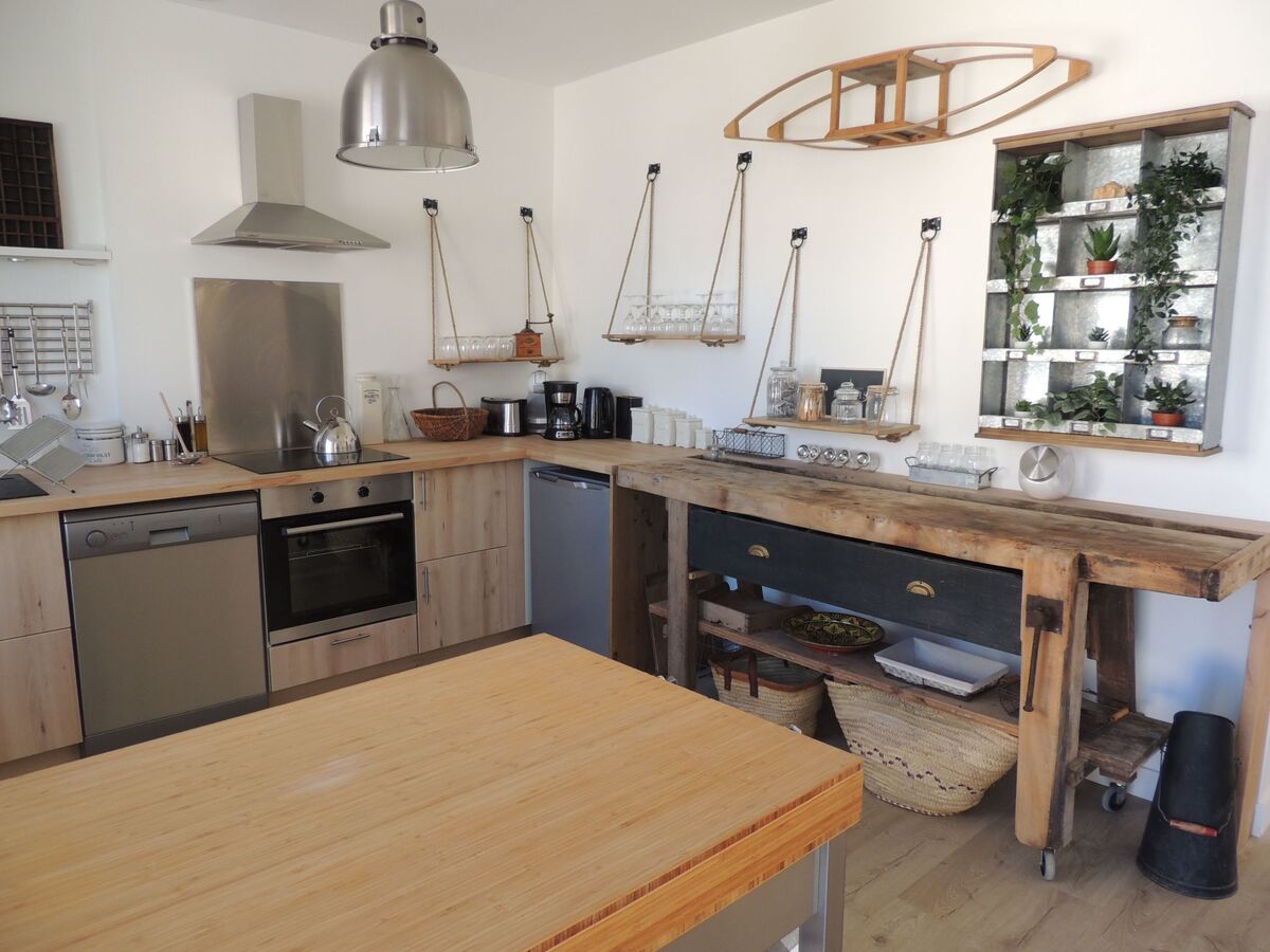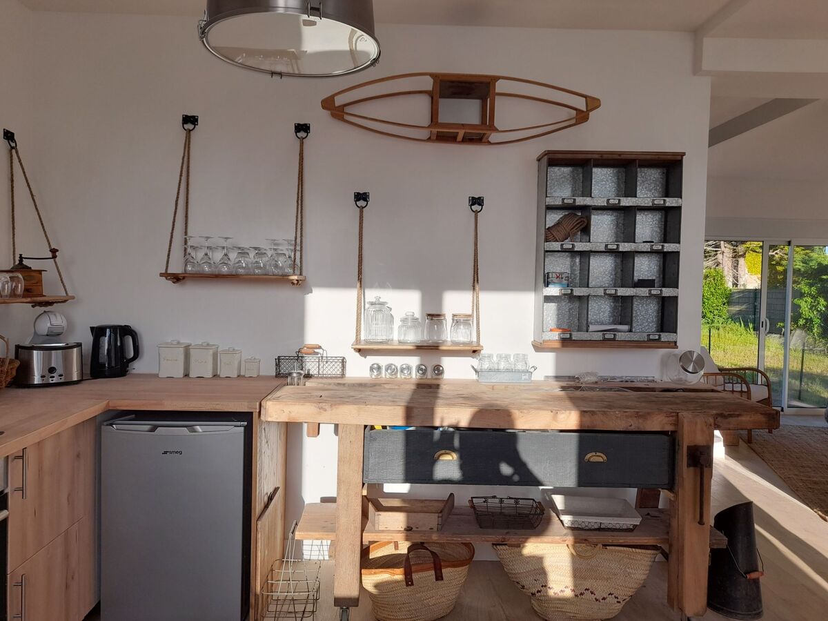 - Une grande cuisine américaine entièrement équipée, salle à manger, salon (TV et livres à disposition) ouvert sur la terrasse et le jardin,