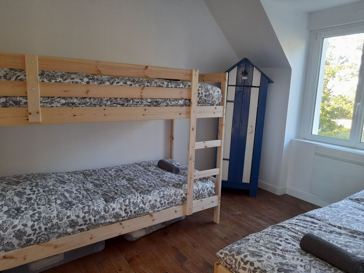 - 1 chambre avec 2 lits superposés + lit simple + lit d’appoint,