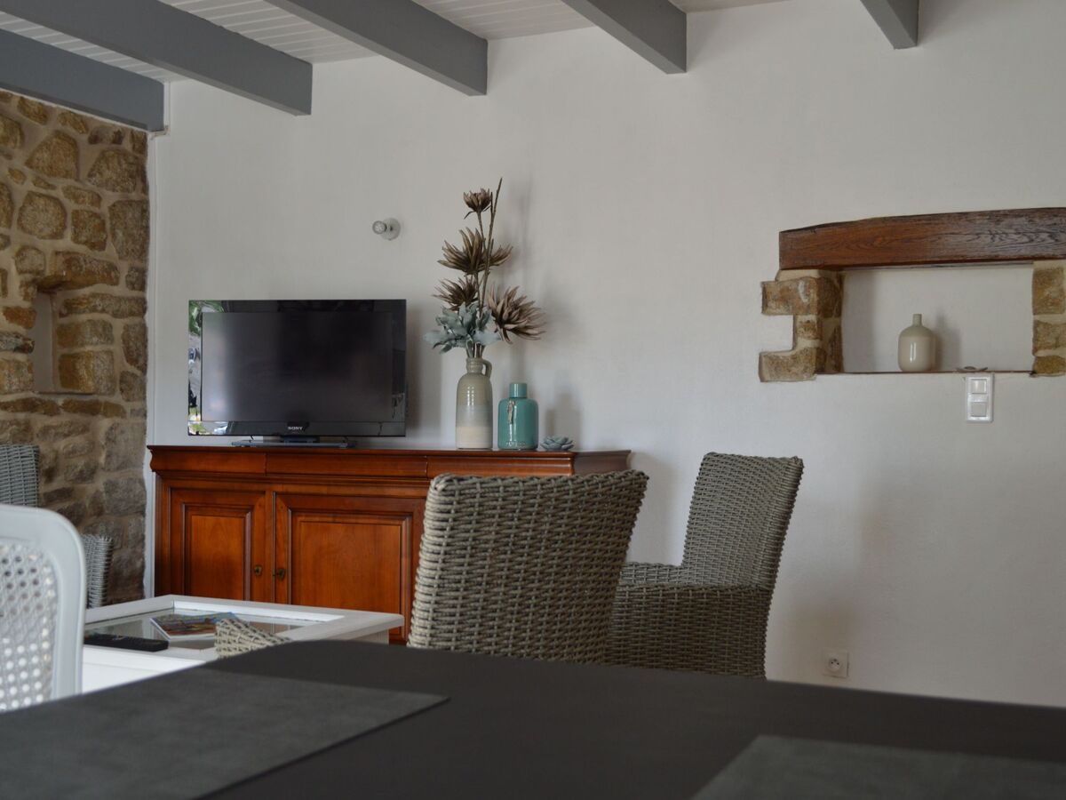 Salon (canapé, fauteuil, TV), cuisine équipée (four, four micro-ondes, lave-vaisselle, frigo-congélateur, plaque induction, cafetière électrique, bouilloire, théière, grille-pain...)
