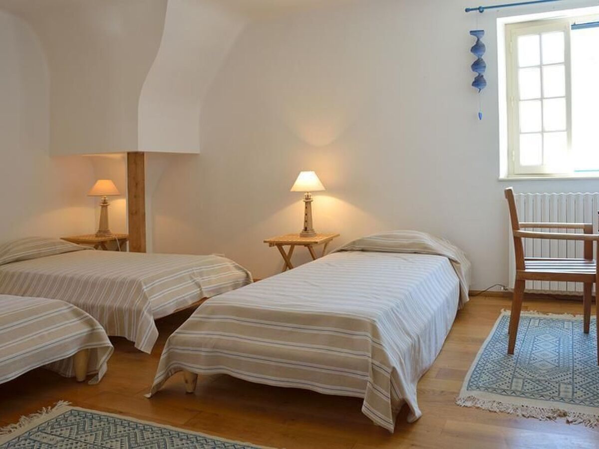 La plus grande chambre (23m²), avec très belle vue mer, possède un lit double de 160 cm de large, la deuxième chambre (20m²) trois lits simples de 90 cm de large et la troisième chambre (11m²), avec belle vue mer également, un lit simple de 110 cm de large.