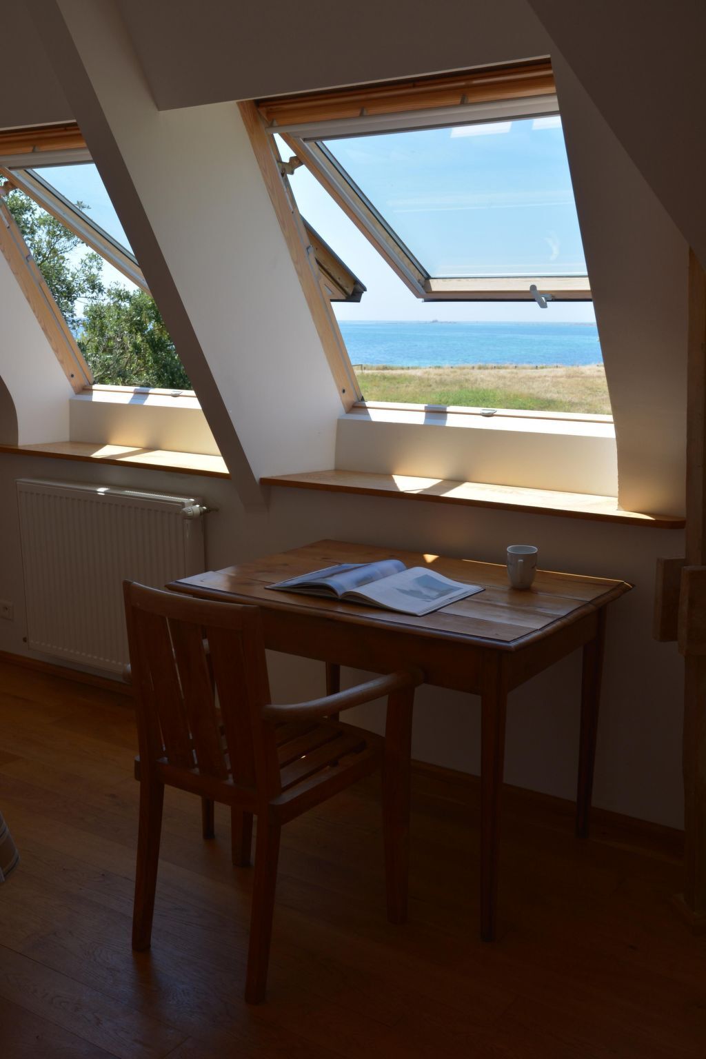 Toutes les pièces (à l'exception de la cuisine et des salles de bains) ont la vue sur la mer et sur le phare d'Eckmühl en arrière-plan.