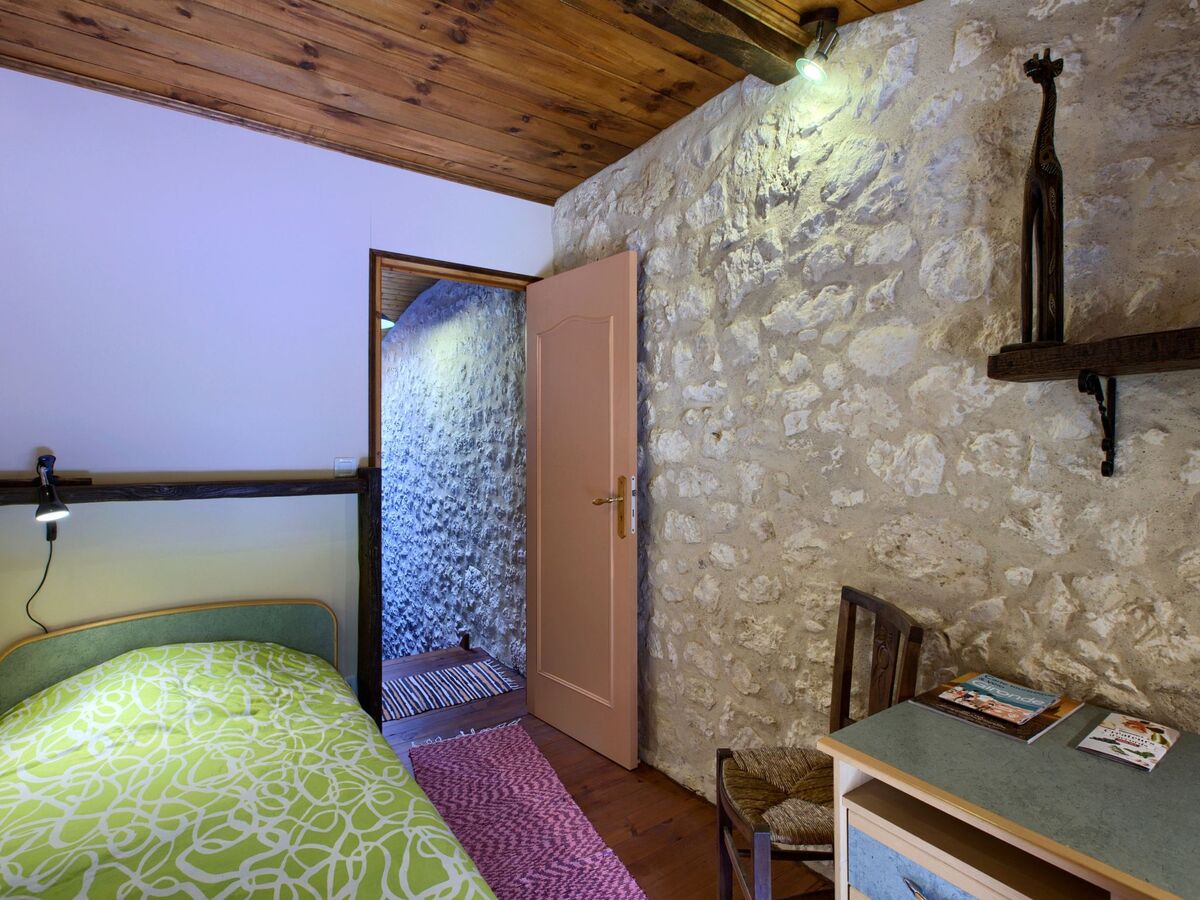 Au premier étage se trouvent trois chambres, deux avec un lit double (160 x 200 et 140 x 200 cm) chacune, une avec un lit simple (90 x 190 cm) et un petit bureau.