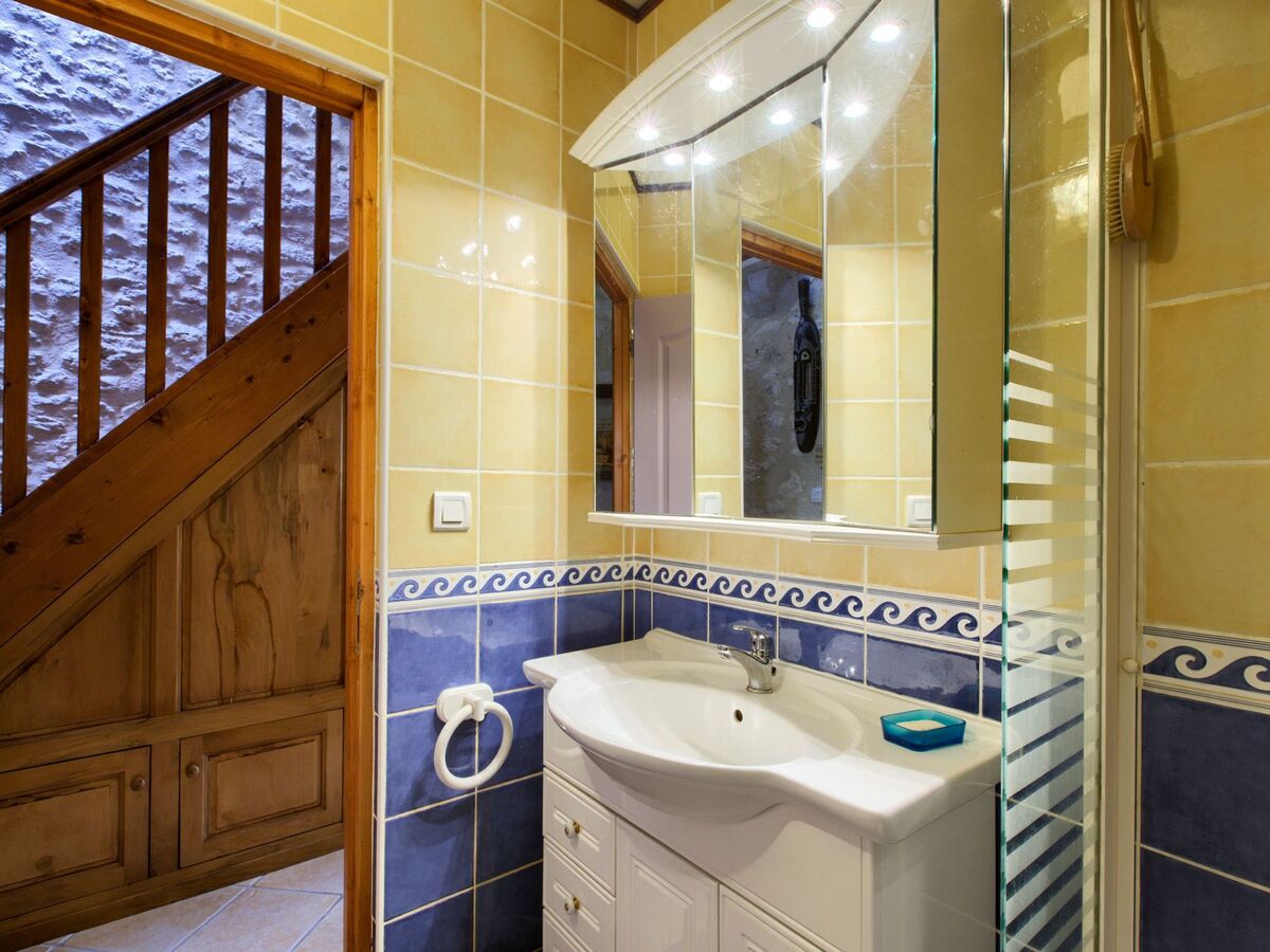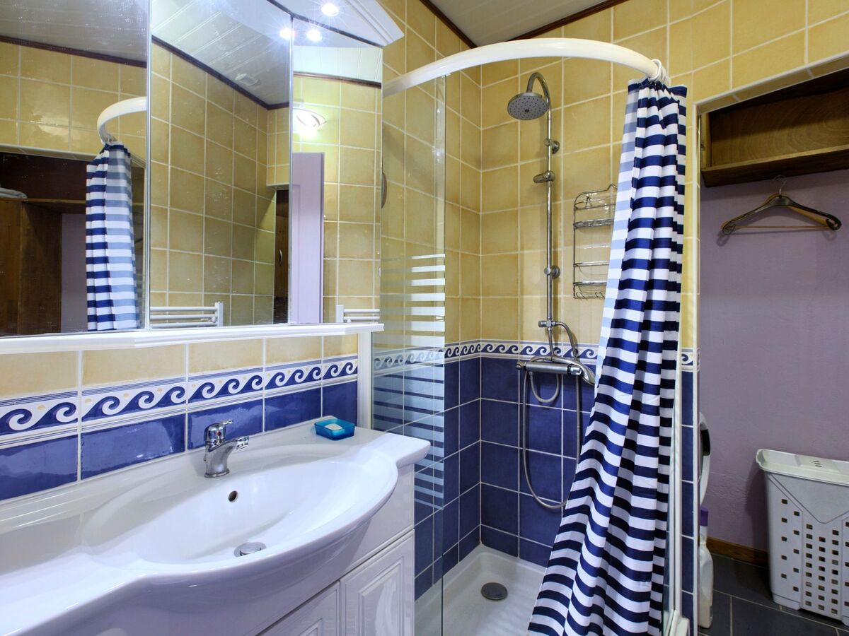 La salle de bain dispose d'une douche, d'un lavabo et de toilettes.