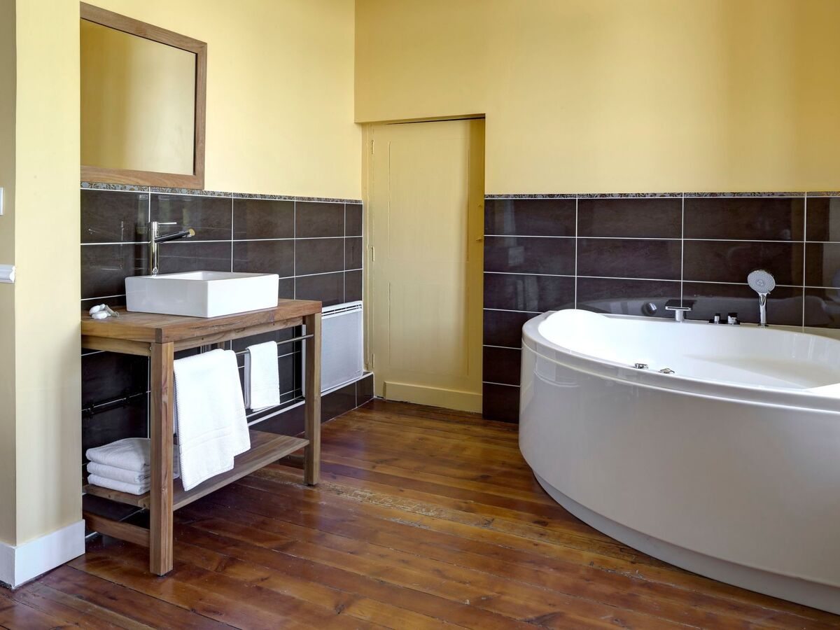 - La suite, grande pièce équipée d’un grand lit, petit salon, salle de bain avec baignoire-jacuzzi