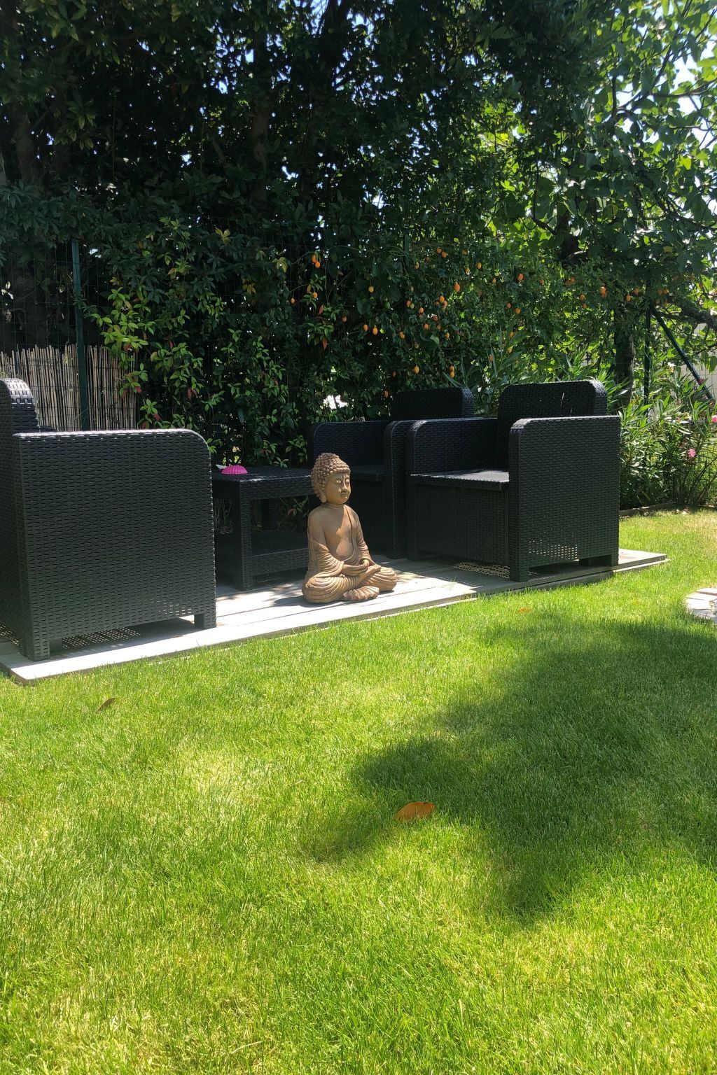 Le jardin, d'une superficie de 60 m², est engazonné et agrémenté d'arbres, offrant un espace privé et sans vis-à-vis.